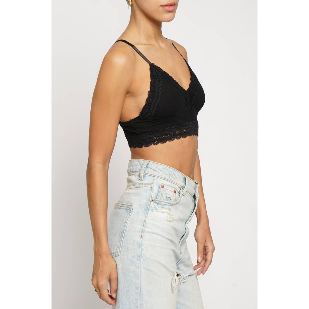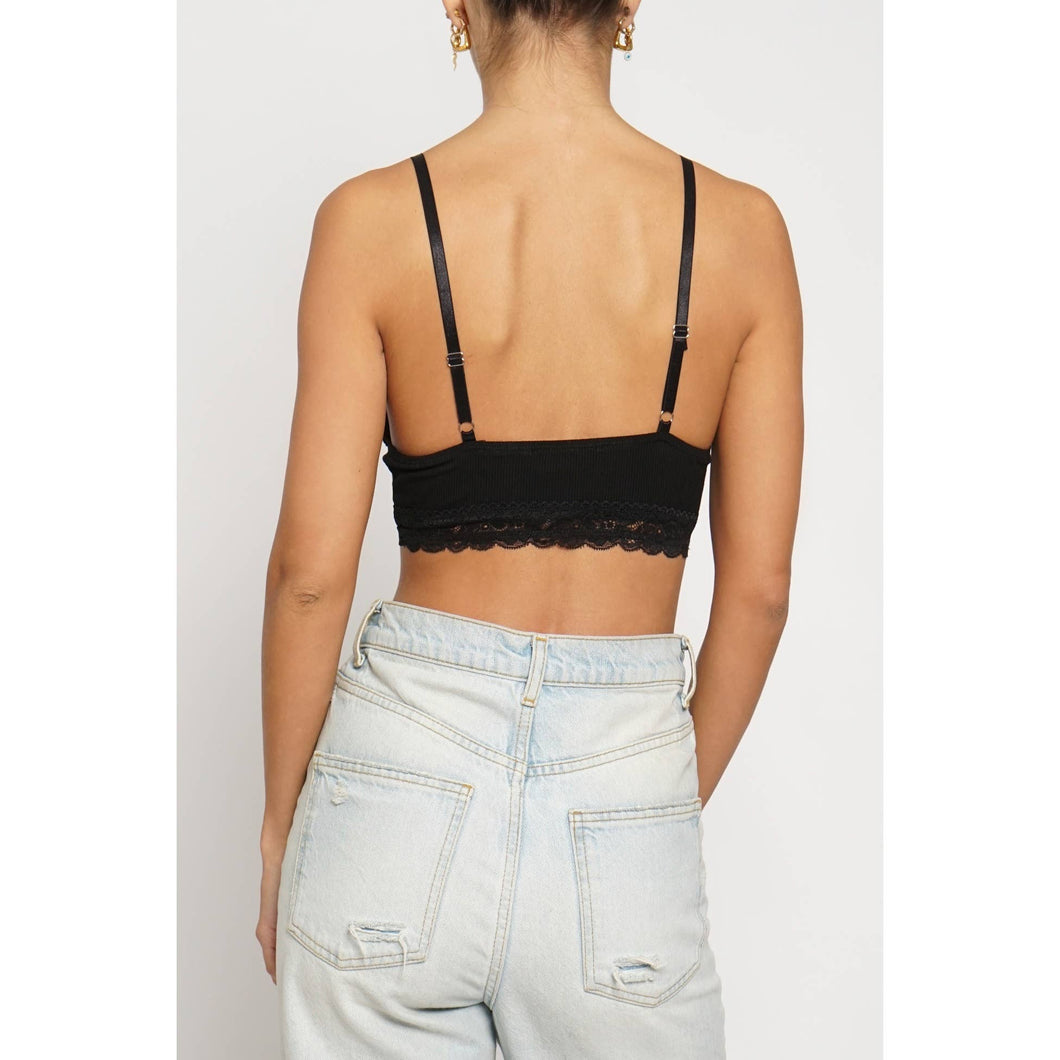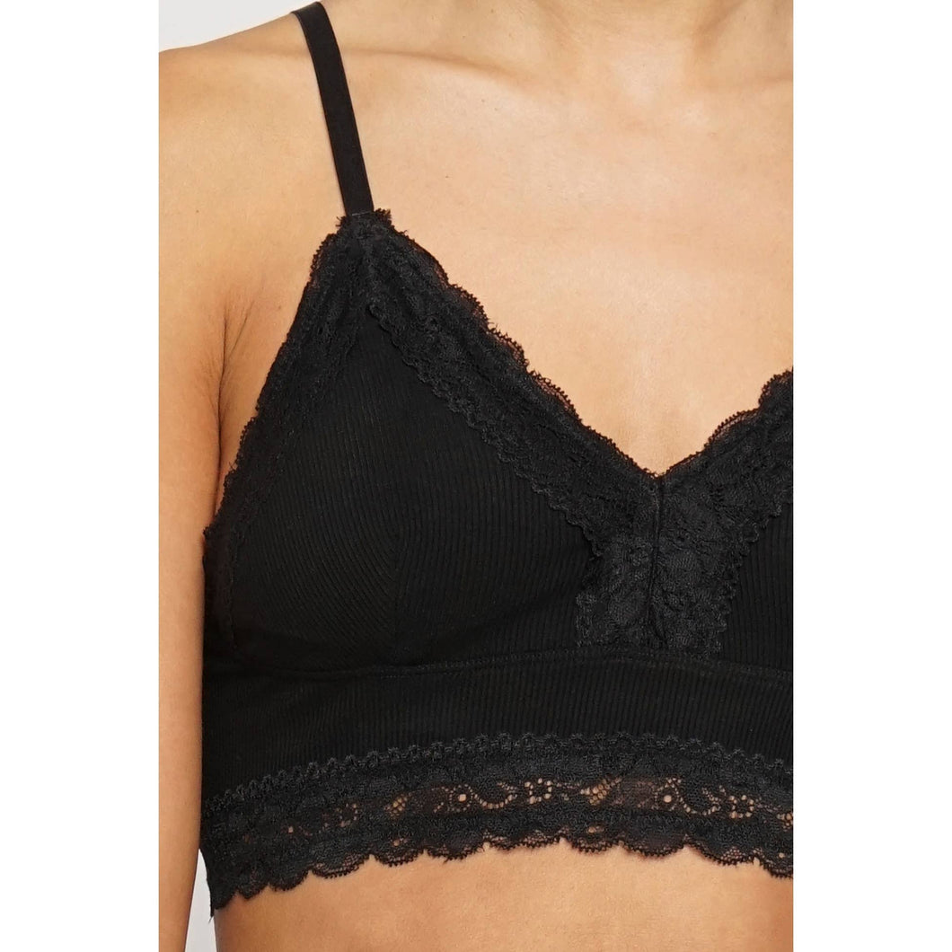 Black Lace Trim Knit Bralette