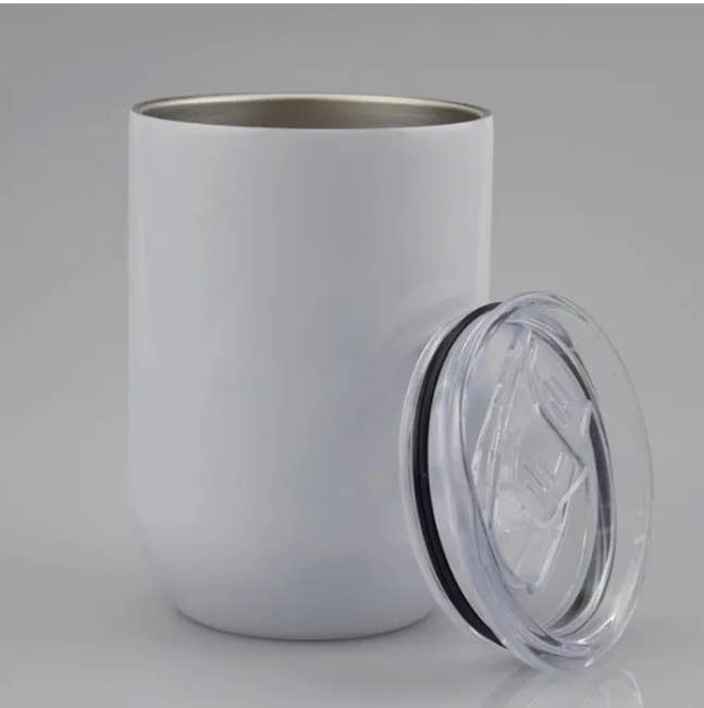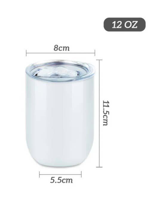 This tumbler is stainless steel, BPA Free clear push on, splash proof lid, 100% straight-not tapered design with anti-skid rubber bottom (some wine tumblers do not fit the rubber bottom and will not come with them), no condensation & shatter-proof. Double wall vacuum insulated that keeps drinks cold for 9+ hours and hot for 4+ hours. All tumblers come with a straw. Approx. 3.1"W x 4.5"H. Colors may vary as they are permanently printed onto the cup via sublimation. Will not chip, fade or come off. Hand wash is recommended, no harsh scrubbing.