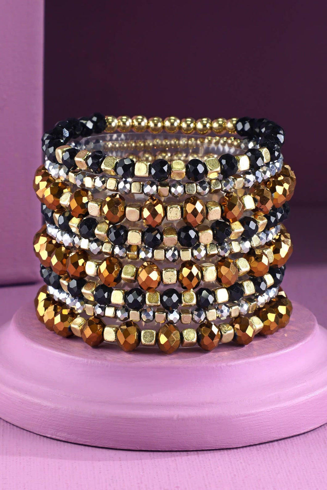 Silver 9 Set Colorful Stackable Beaded Stretch Bracelet
