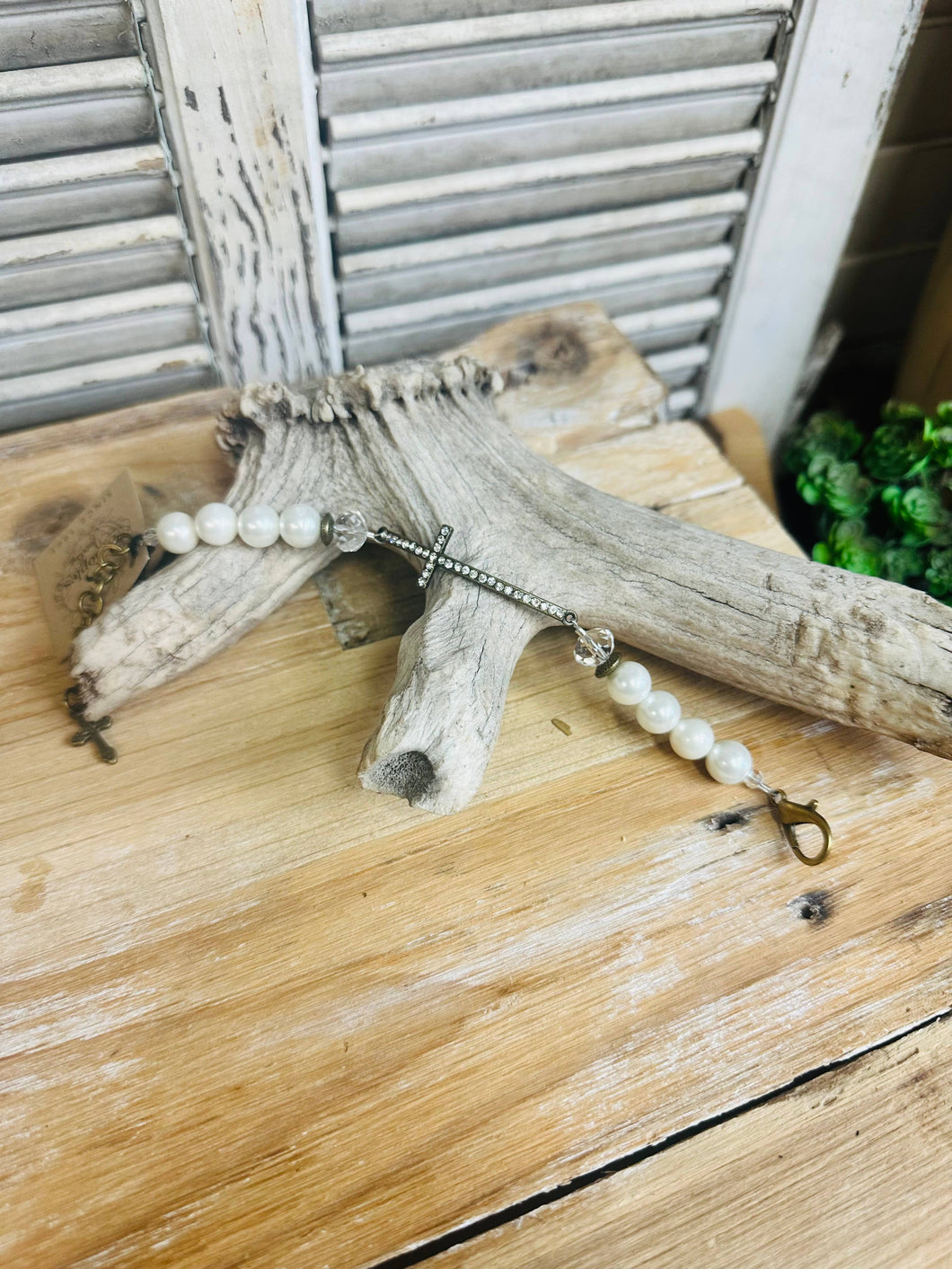 Pearl Crystal Cross Bracelet