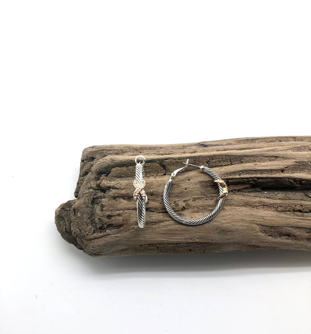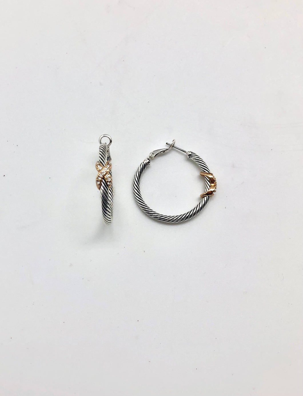Earring Medium Size Hoops Crystal Rhinestone X Two Tone