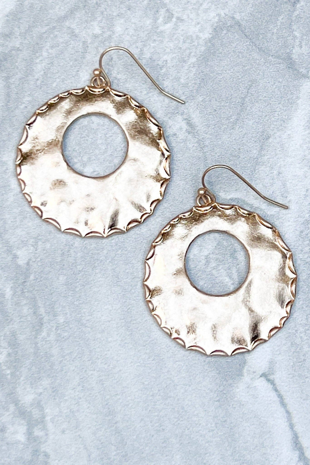 hammered flat oval earring with "O-shaped" cutout in center Diameter:1.5"