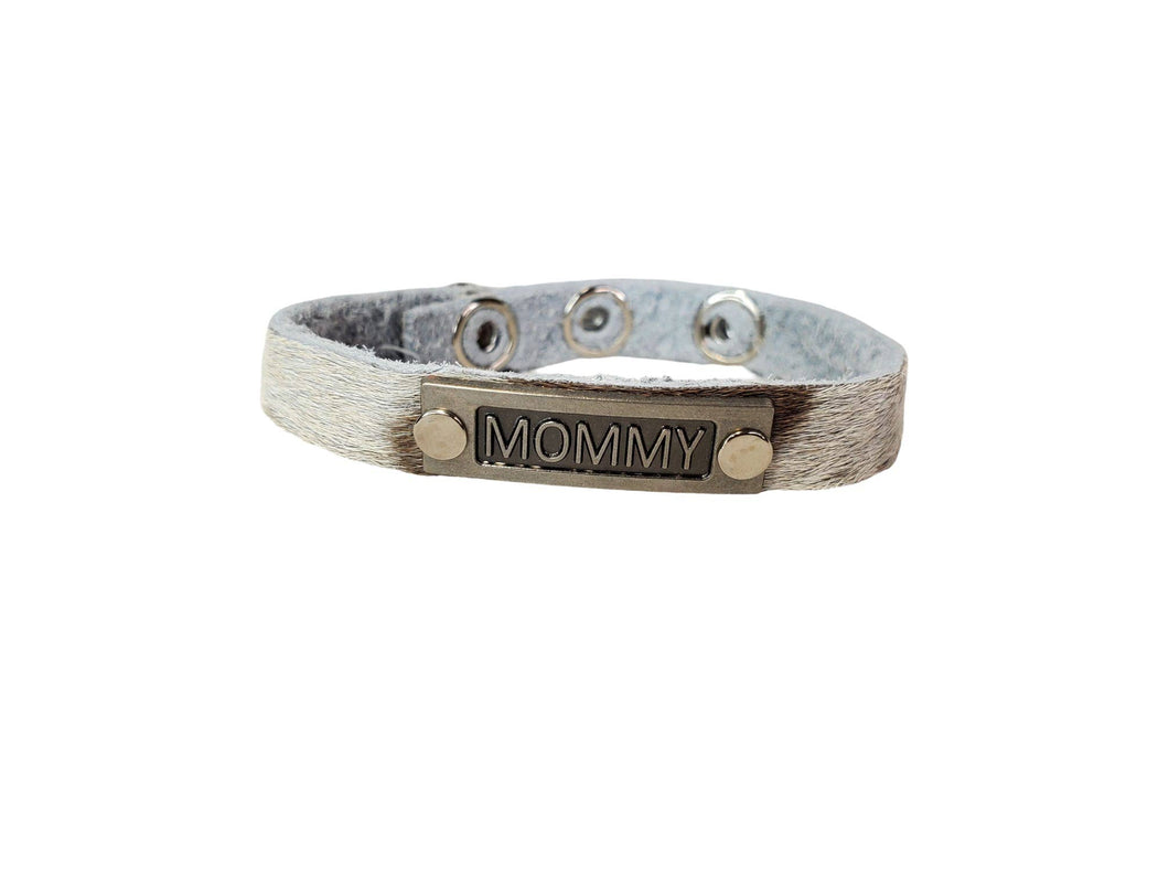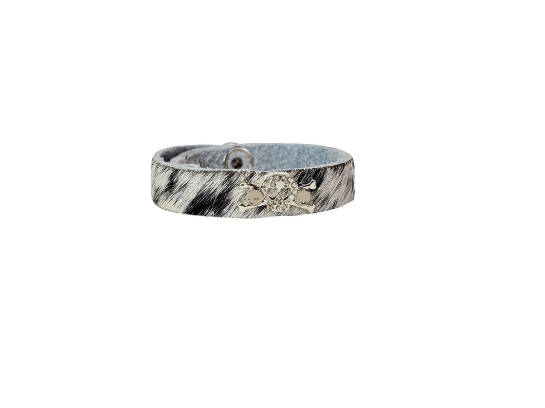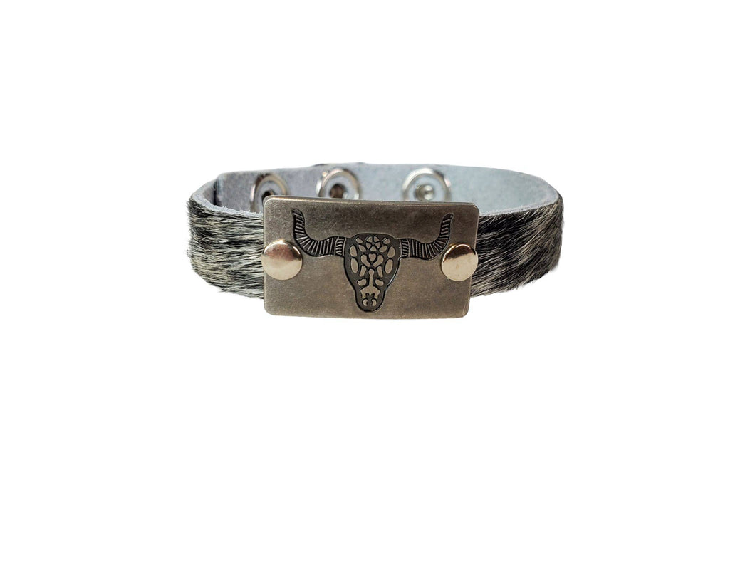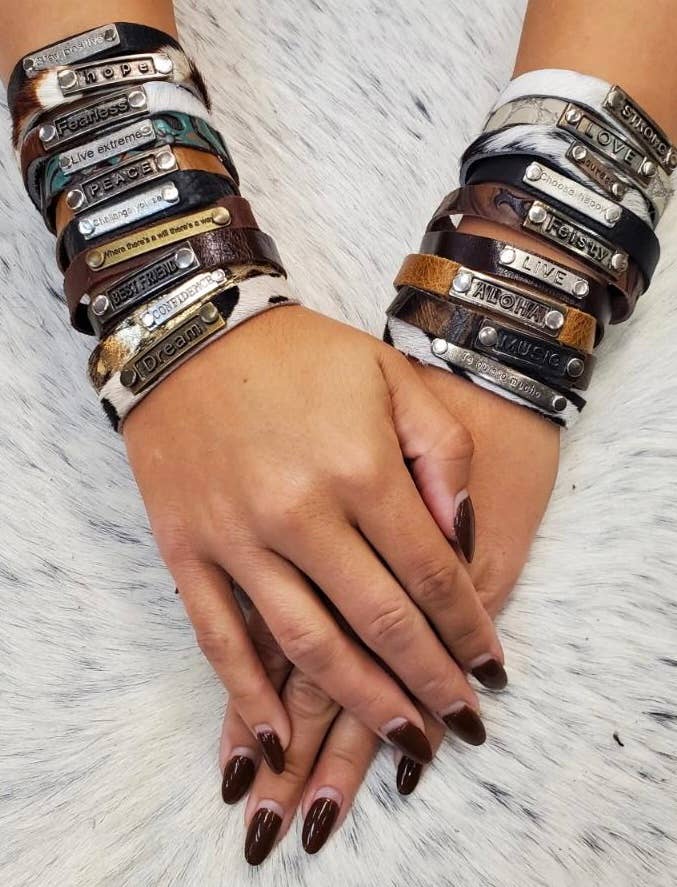 Genuine cowhide fur and print mini inspirational leather cuff 0.75'' W x 7.5"3 Snap Closure 6 in, 7 in, 7.5 in.
