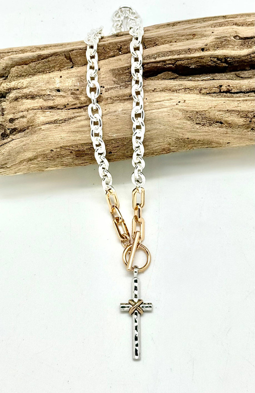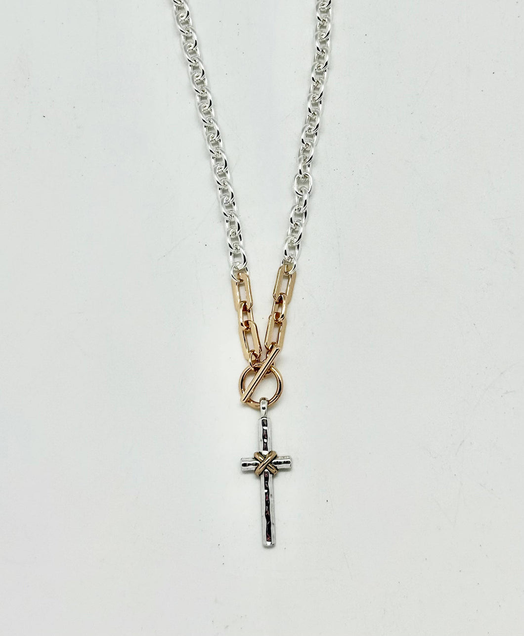 Necklace AlloyPlated Lg.Multi Metal Cross w/Gold Toggle 18”