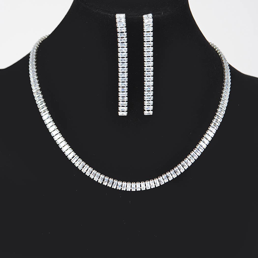 Silver Stone Necklace Set
