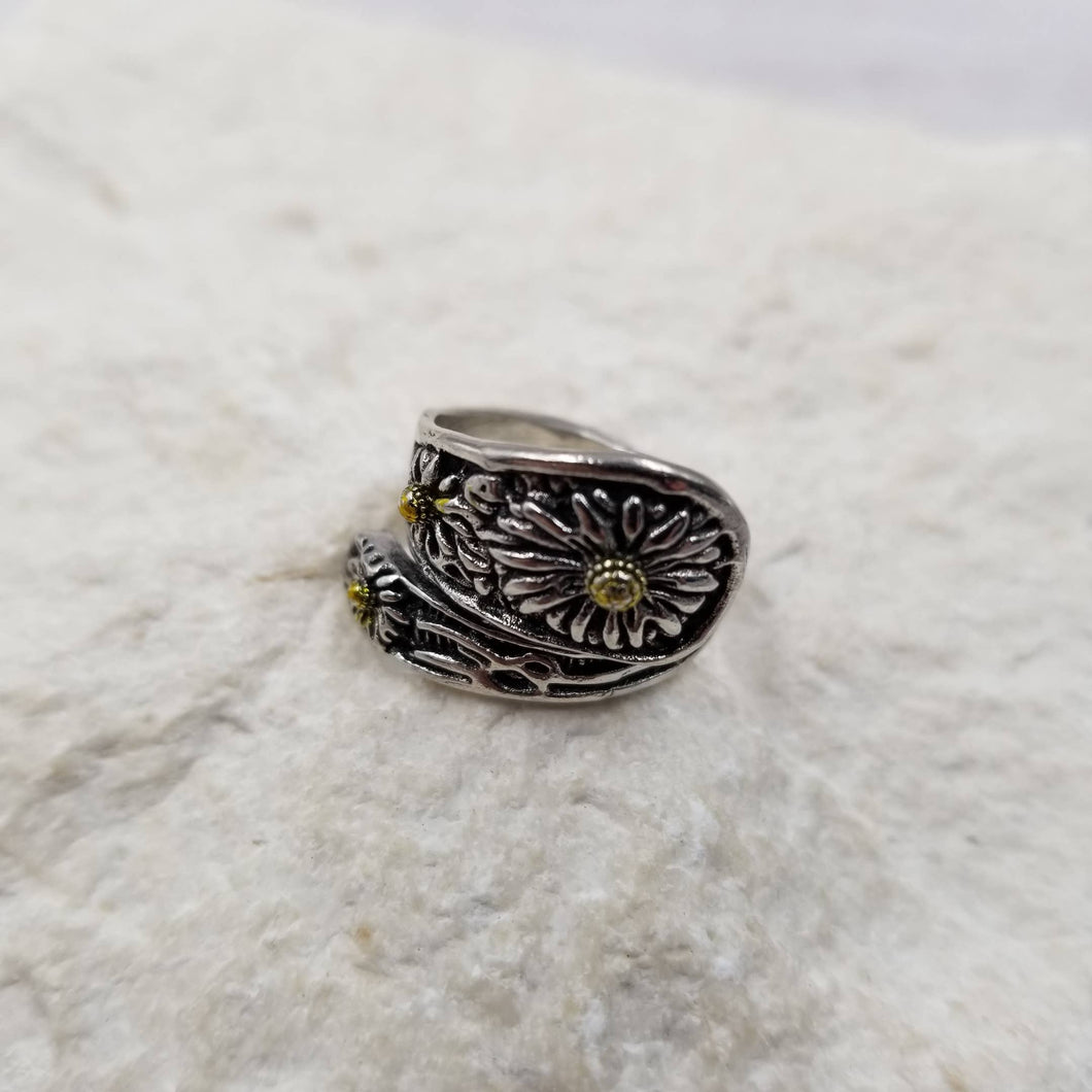 Vintage Silver Carved Sunflower Ring Size: one size. Weight :0.02 lb . Color:silver. Function: Jewelry&Accessories . Application: Women/Girls . Occassion:Party/Office/Casual . Package Includes: 1Pcs/Opp Bag .
