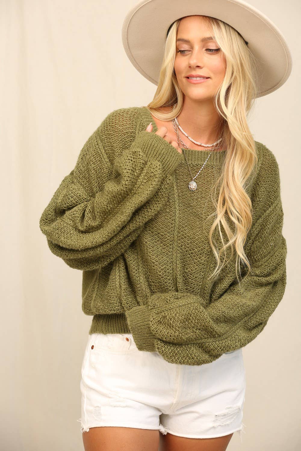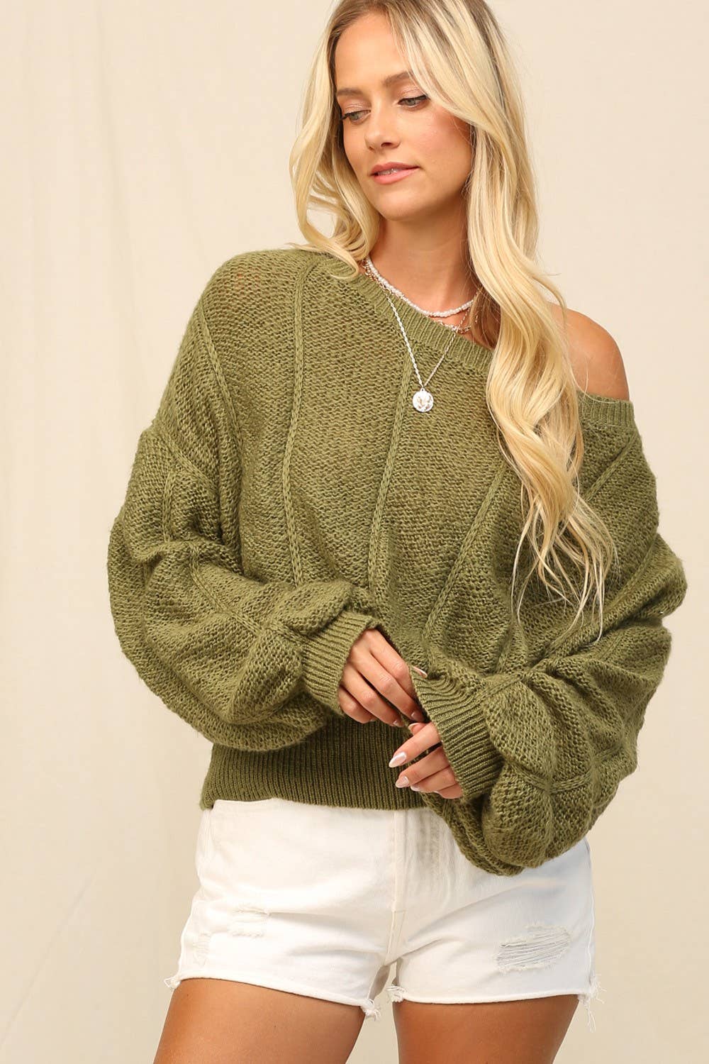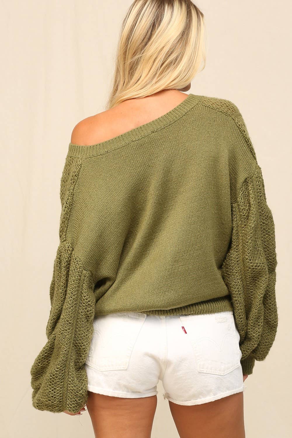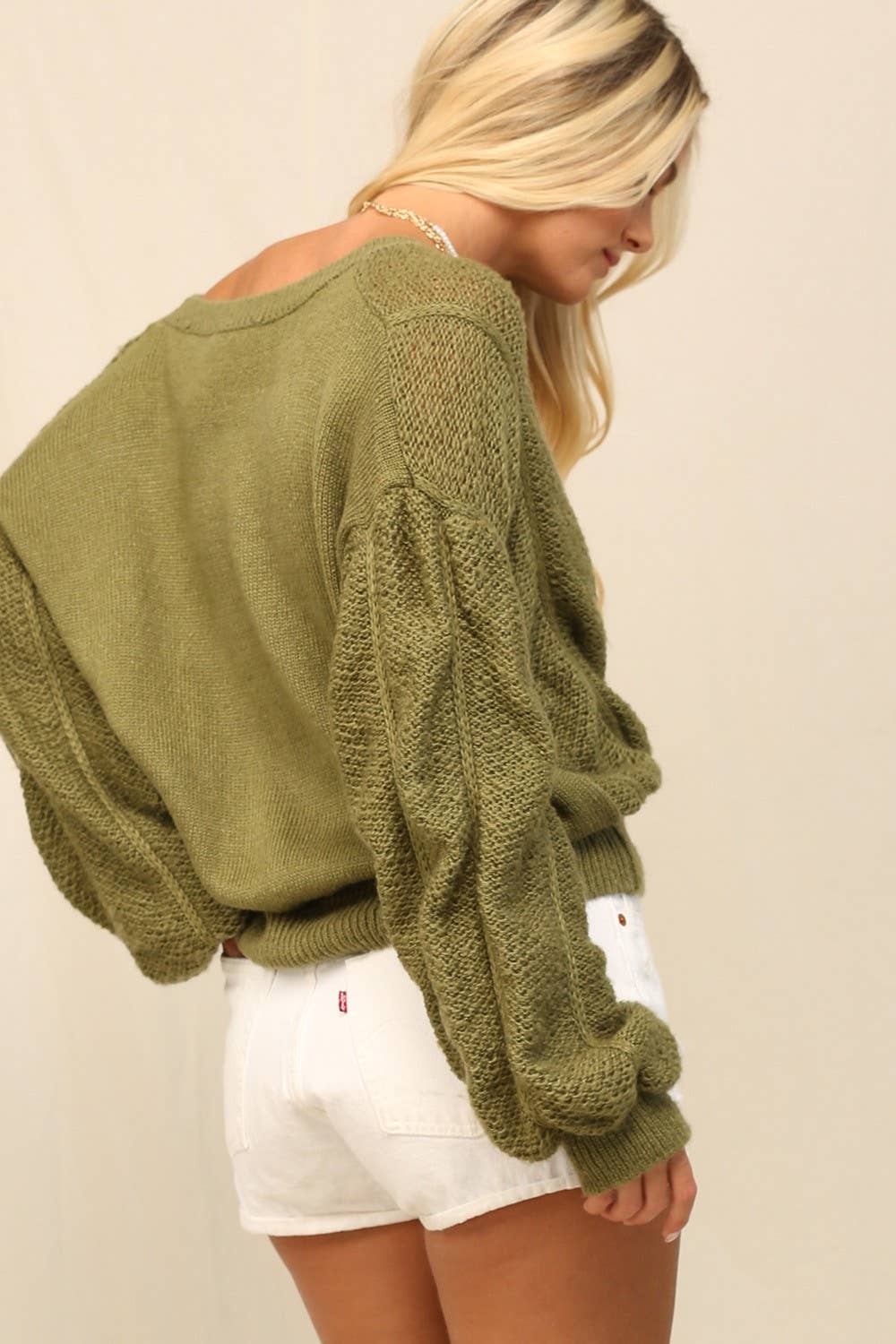 Terra Moss Pullover With Exaggerated Ruching Sleeves