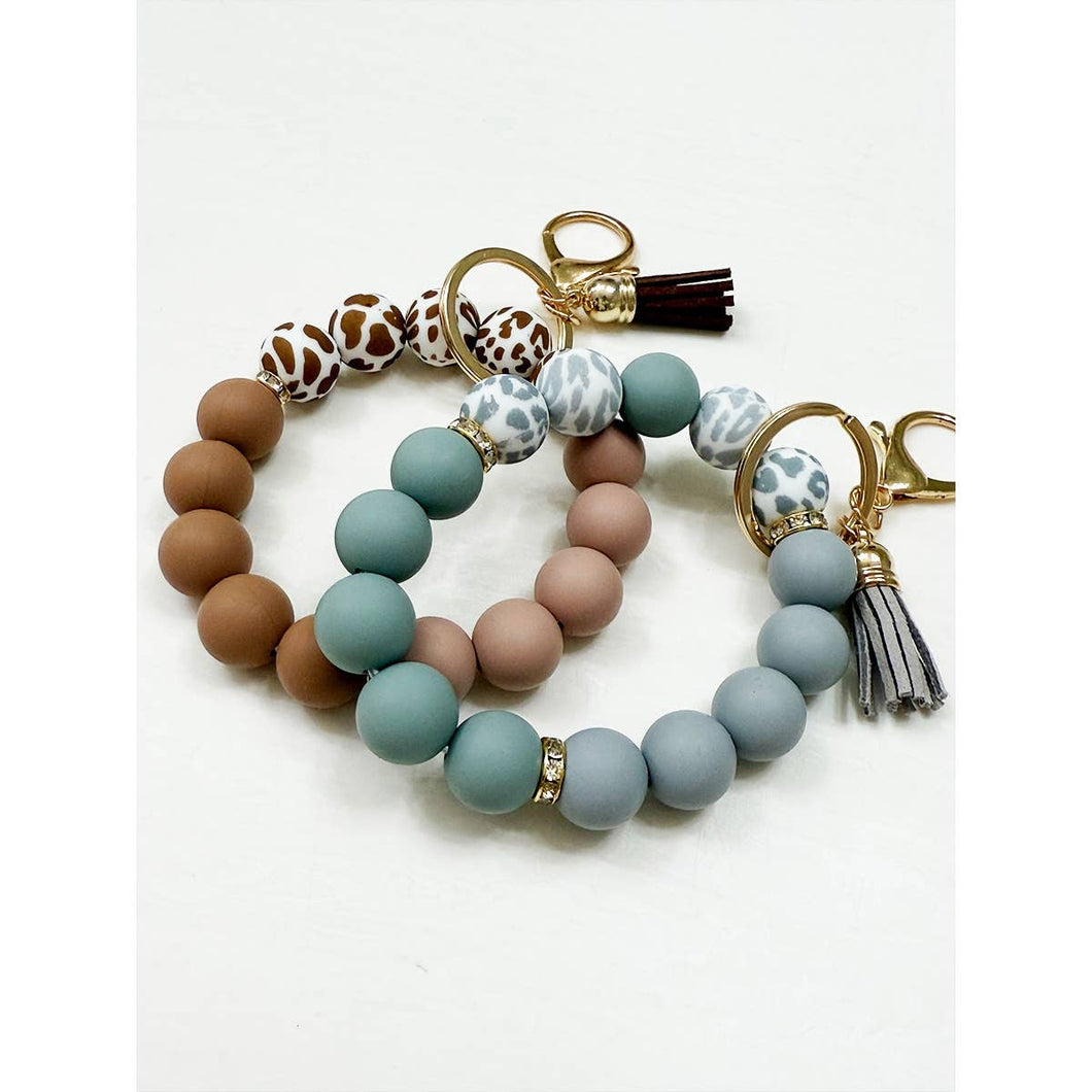 Taupe Leo Beaded Keychain Wristlet Key Ring Bracelet