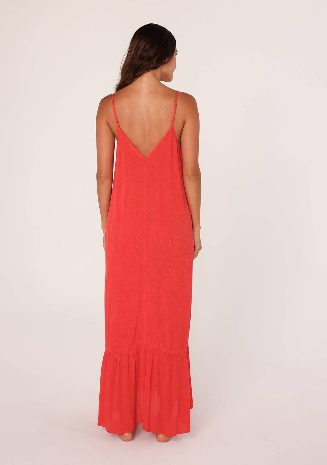 Our ultra-versatile, flowy, and slightly sheer maxi dress made of rayon gauze features a v-neckline, adjustable spaghetti straps, essential side pockets, and a cute tiered hem for movement and shape. Add this stunning maxi dress to your resort collection as a beach cover-up or keep it on-hand for as a spring/summer staple. Either way, this Lovestitch fan-favorite is sure to get some attention!