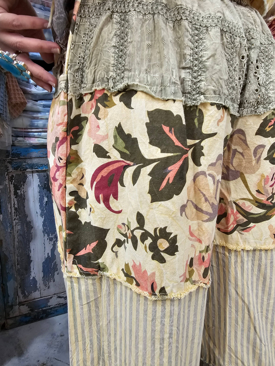 Perfect pant for anyone! Extra long for tall girls but with ties around base to create a subtle blousant and make it as long or short as desired. The drawstring waistband creates a one size for sizes 2-2x Ties back with our knotted Chambray shirt Jacket. Limited quantities so hurry!! *ALL ITEMS ARE OVERSIZED AND NOT U.S. STANDARD SIZING - DUE TO THE VINTAGE SHABBY CHIC STYLE IN WHICH THEY ARE DESIGNED*