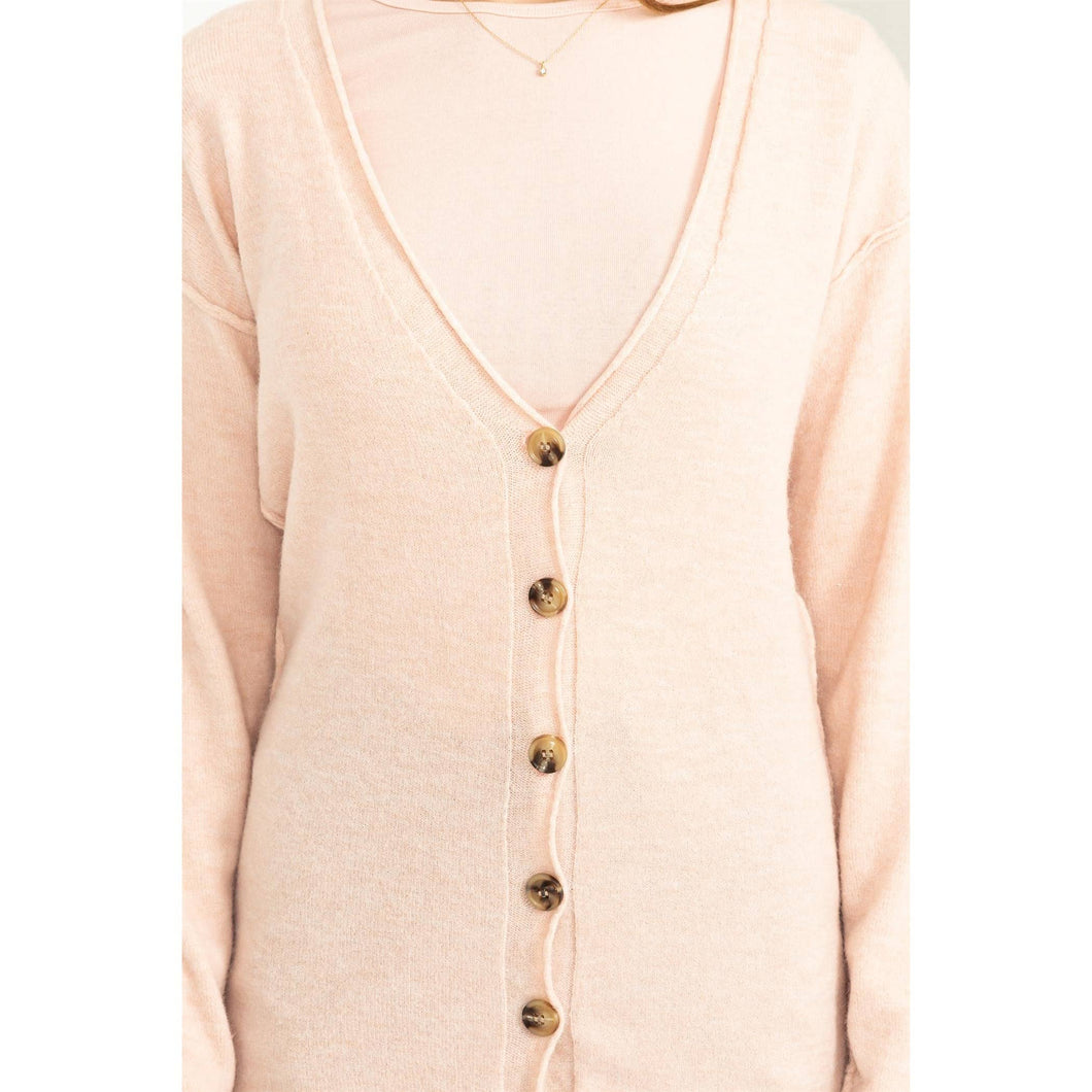 Dusty Pink Deep V-Neck Cardigan