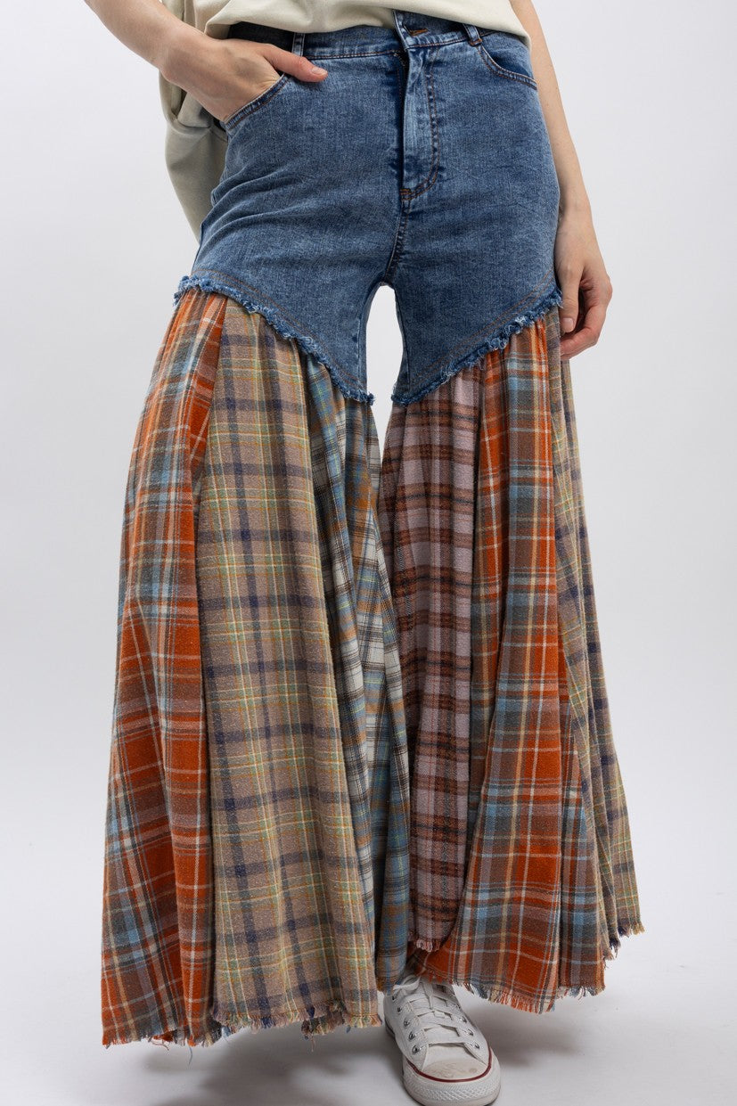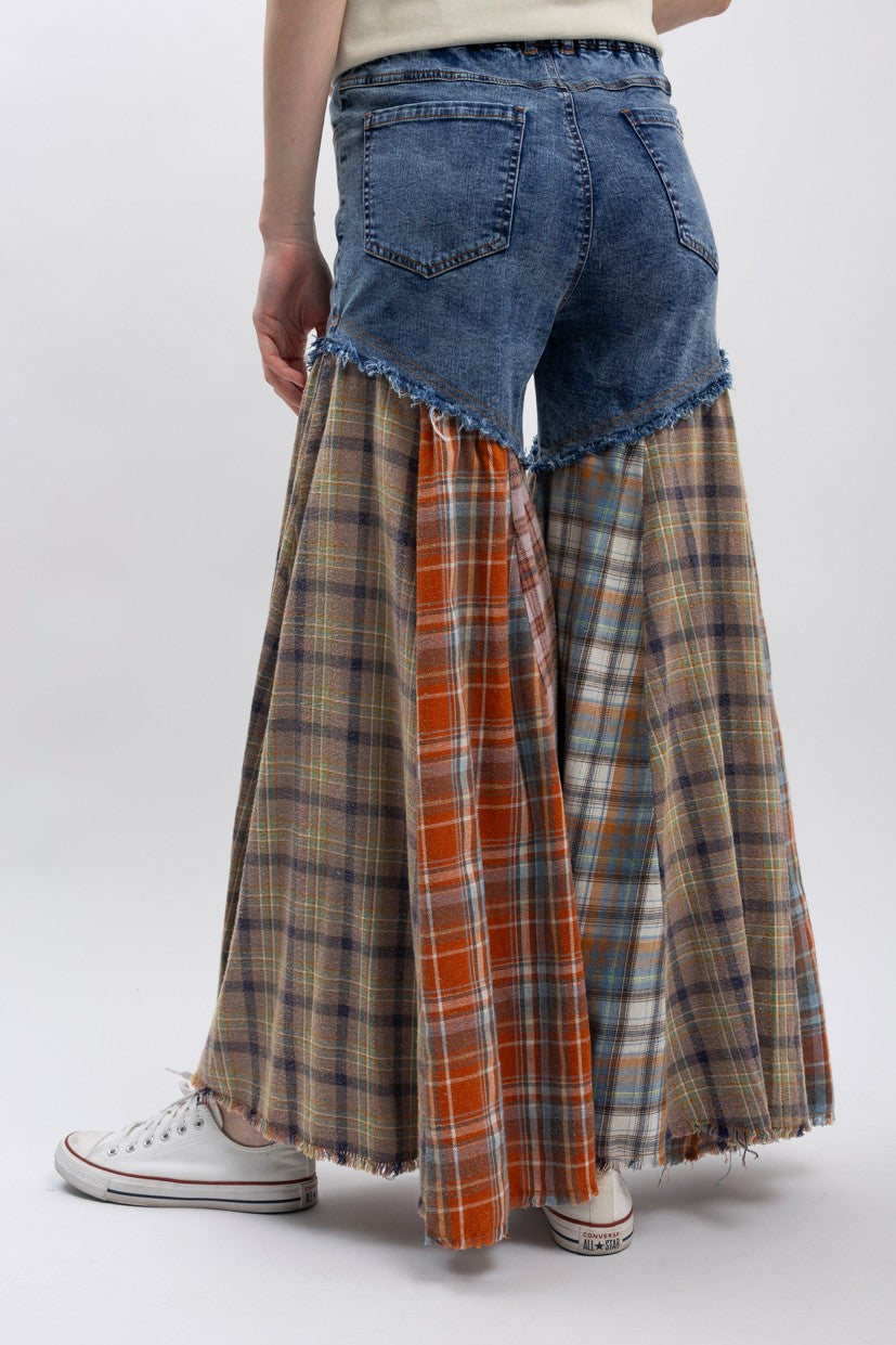 Rock a bold, eye-catching look with these plaid patchwork flared jeans! Featuring a fun mix of colorful plaid patches throughout, they offer a regular fit with a stretchy denim fabric that moves with you. The elastic back waistband keeps things comfy, while the zip and button fly provides classic styling. Garment washed for that perfectly lived-in vibe, these jeans are your ticket to standing out in the best way possible.