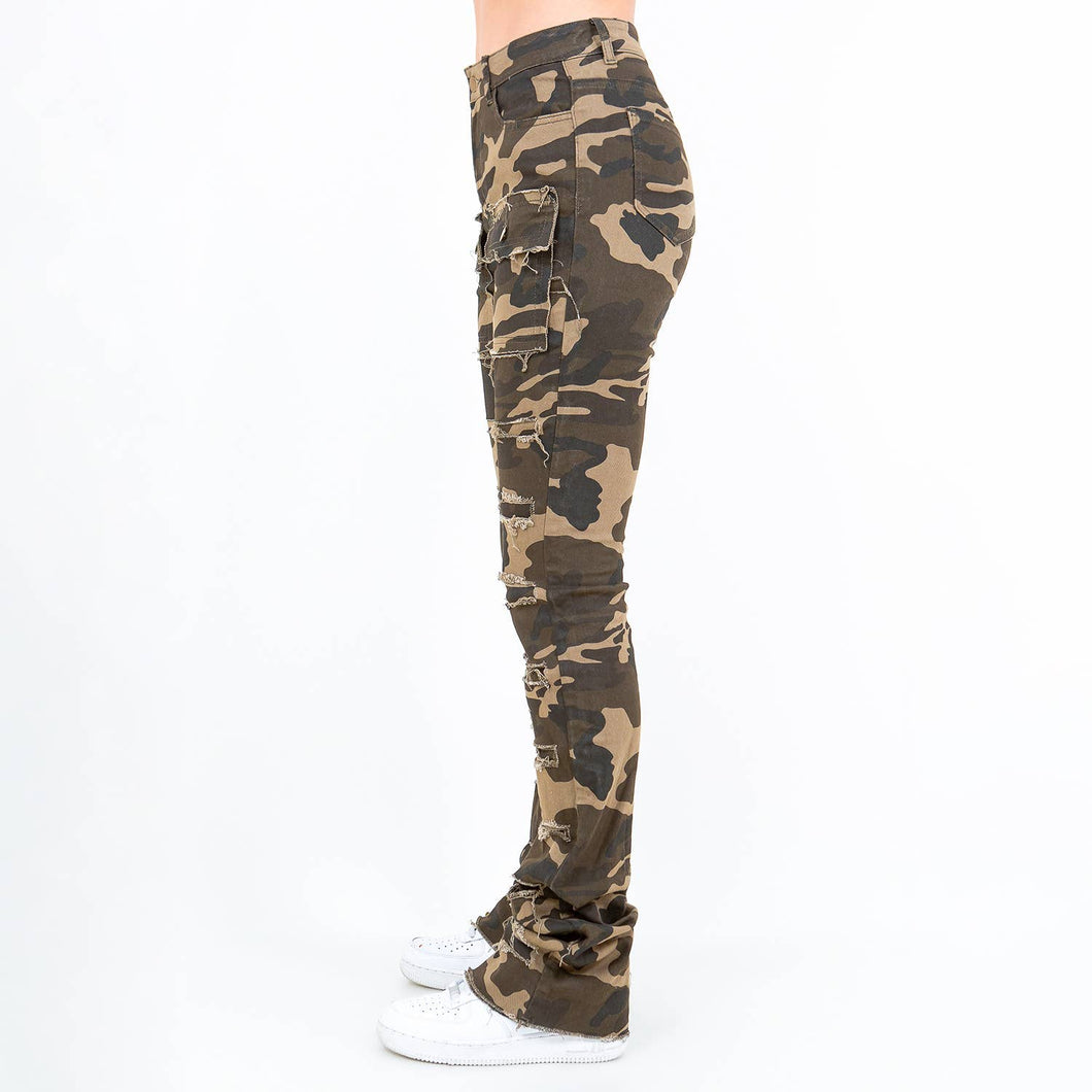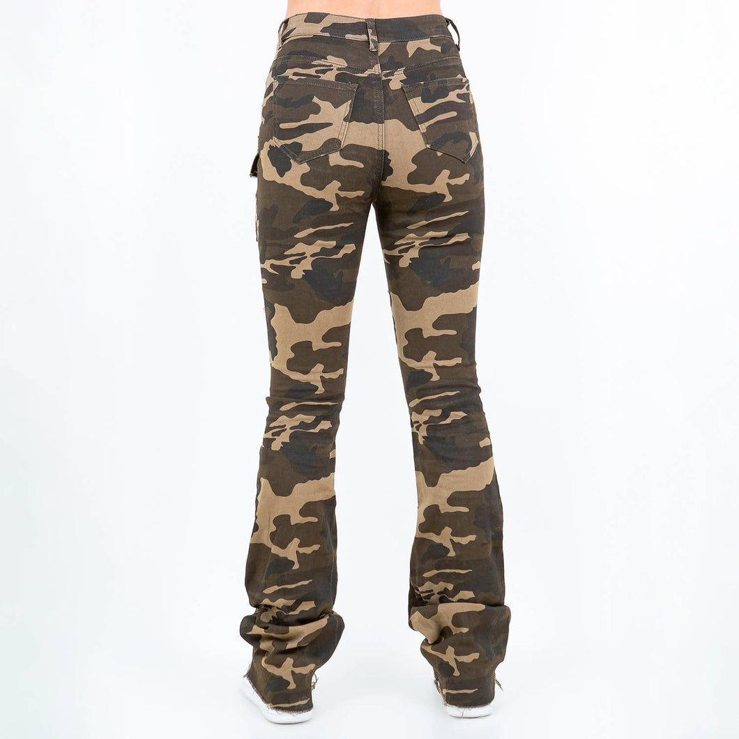 Olive Camo Patchwork Stacked Pants – B'Dazzled Shop