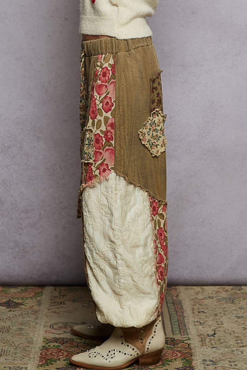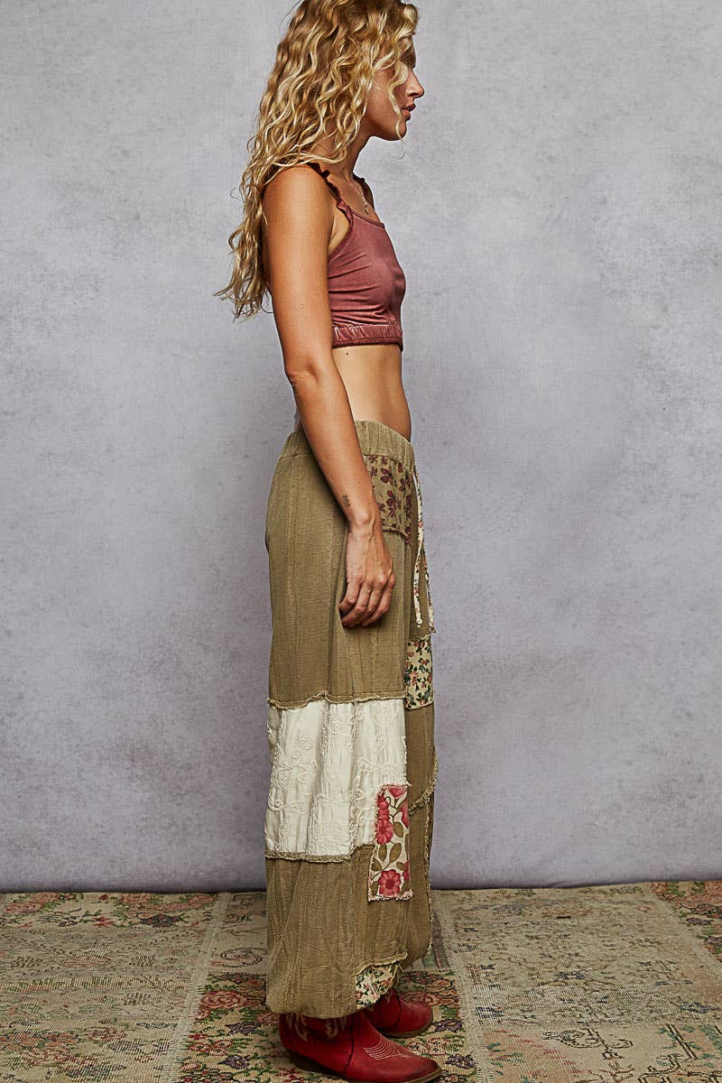 Dried Herb Double gauze patchwork contrast patch woven POL pants
