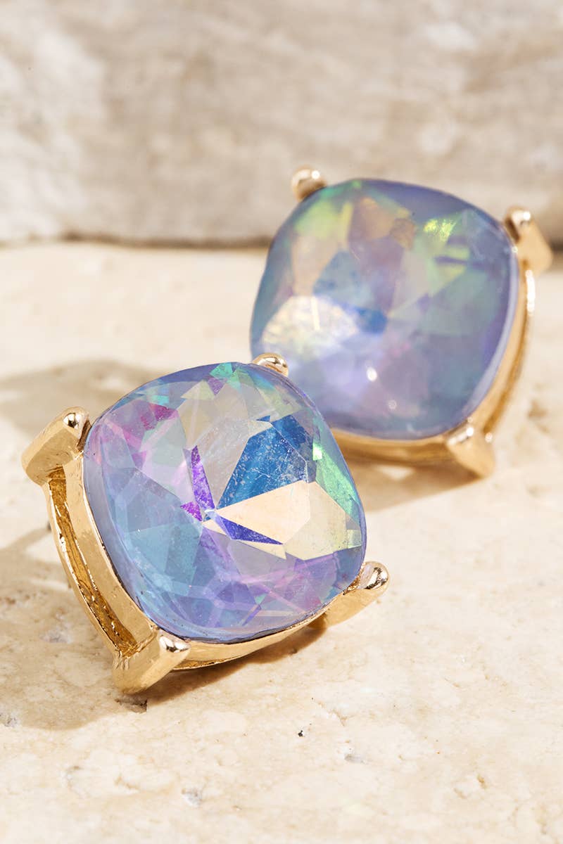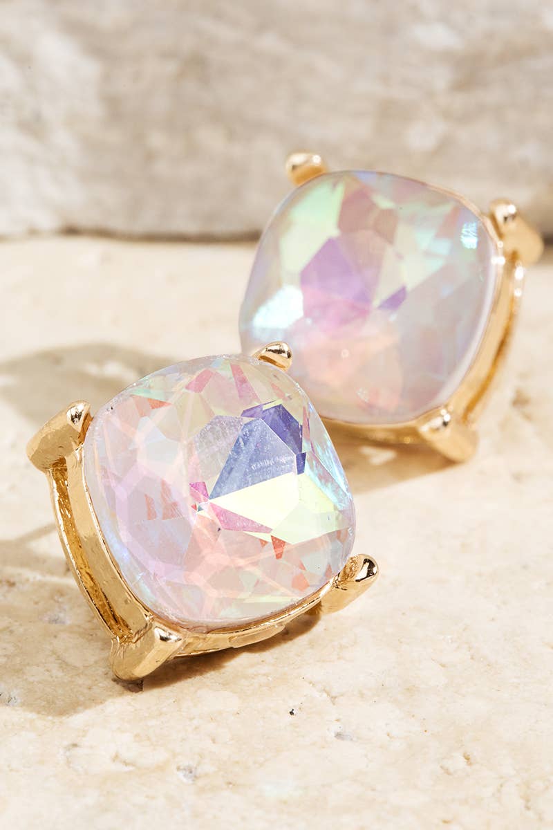 Gorgeous shimmering faceted glass with metal stud earrings *Zinc *Nickel/Lead Compliant *APPROX. L 0.50" W 0.50" 0.32oz *Imported
