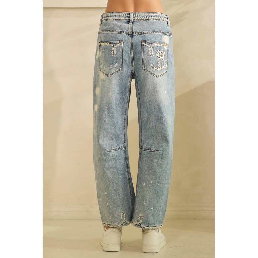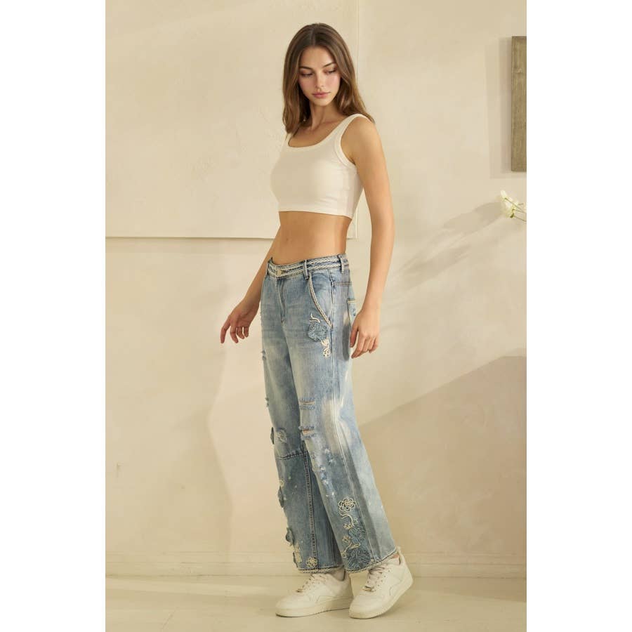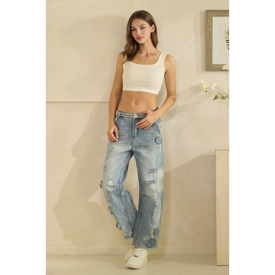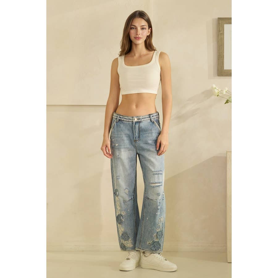 Denim Floral Embroidered Distressed Oli+Hali Jeans