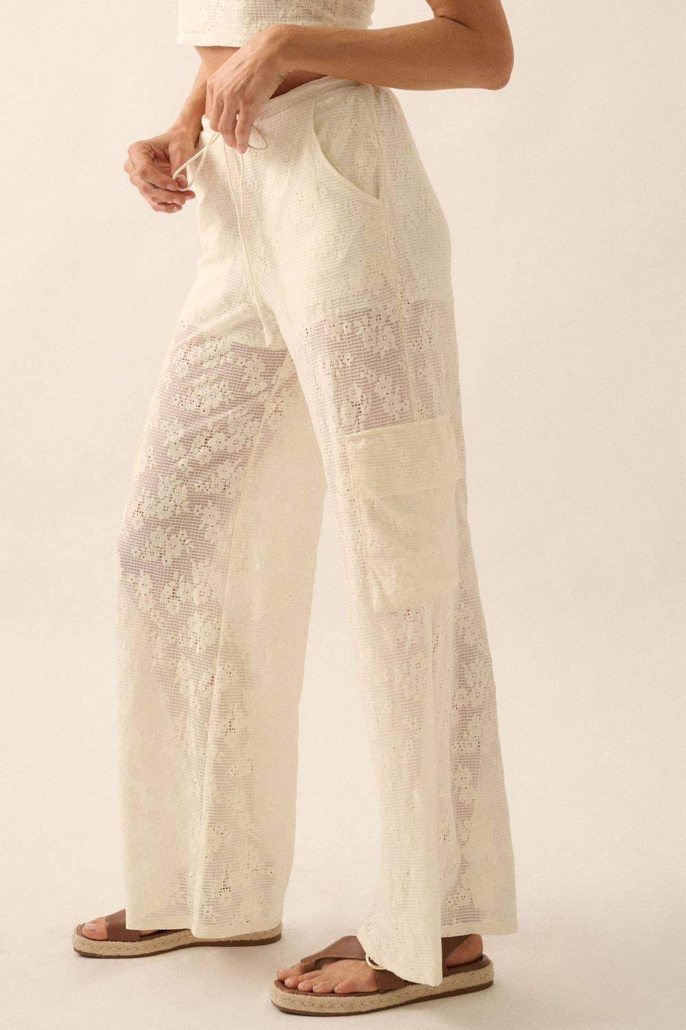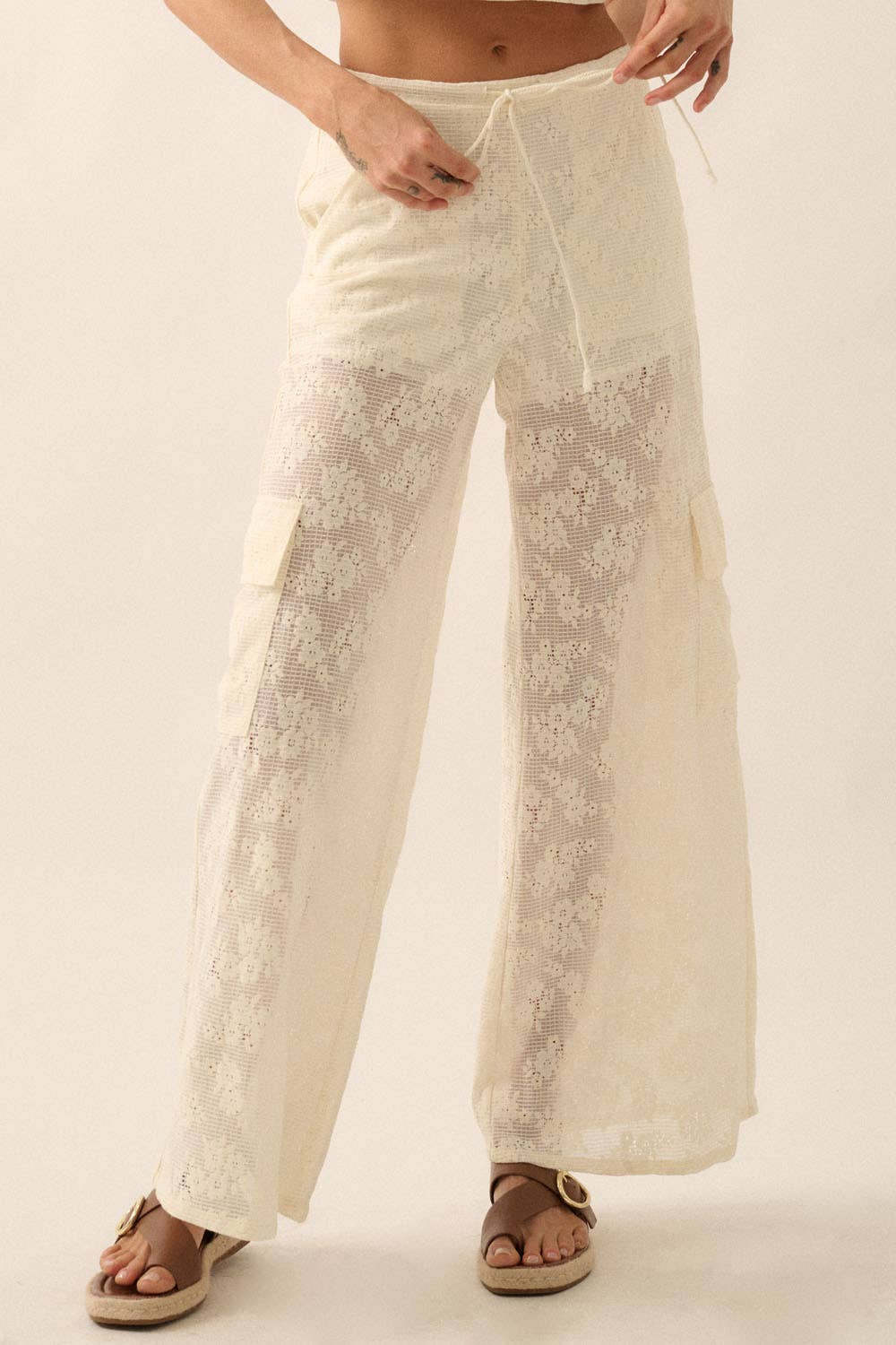 Cream Floral Lace Drawstring Cargo Pants – B'Dazzled Shop