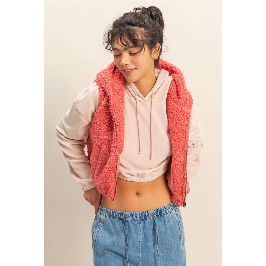 Tea Rose Fluffy Full Zip Cropped Hooded Vest – B'Dazzled Shop
