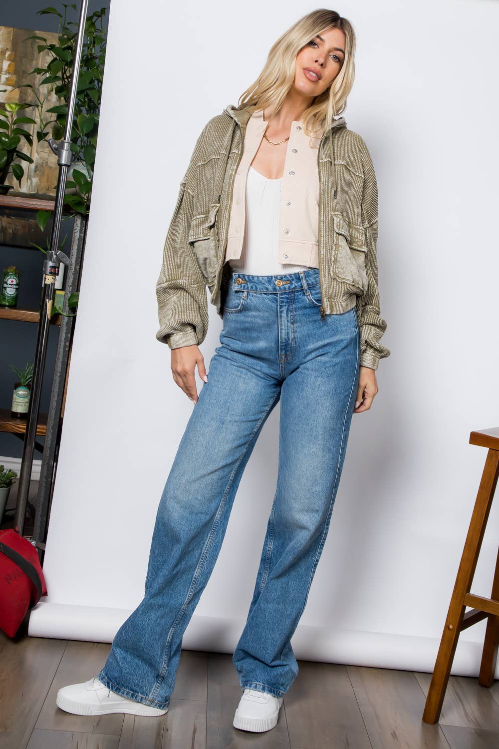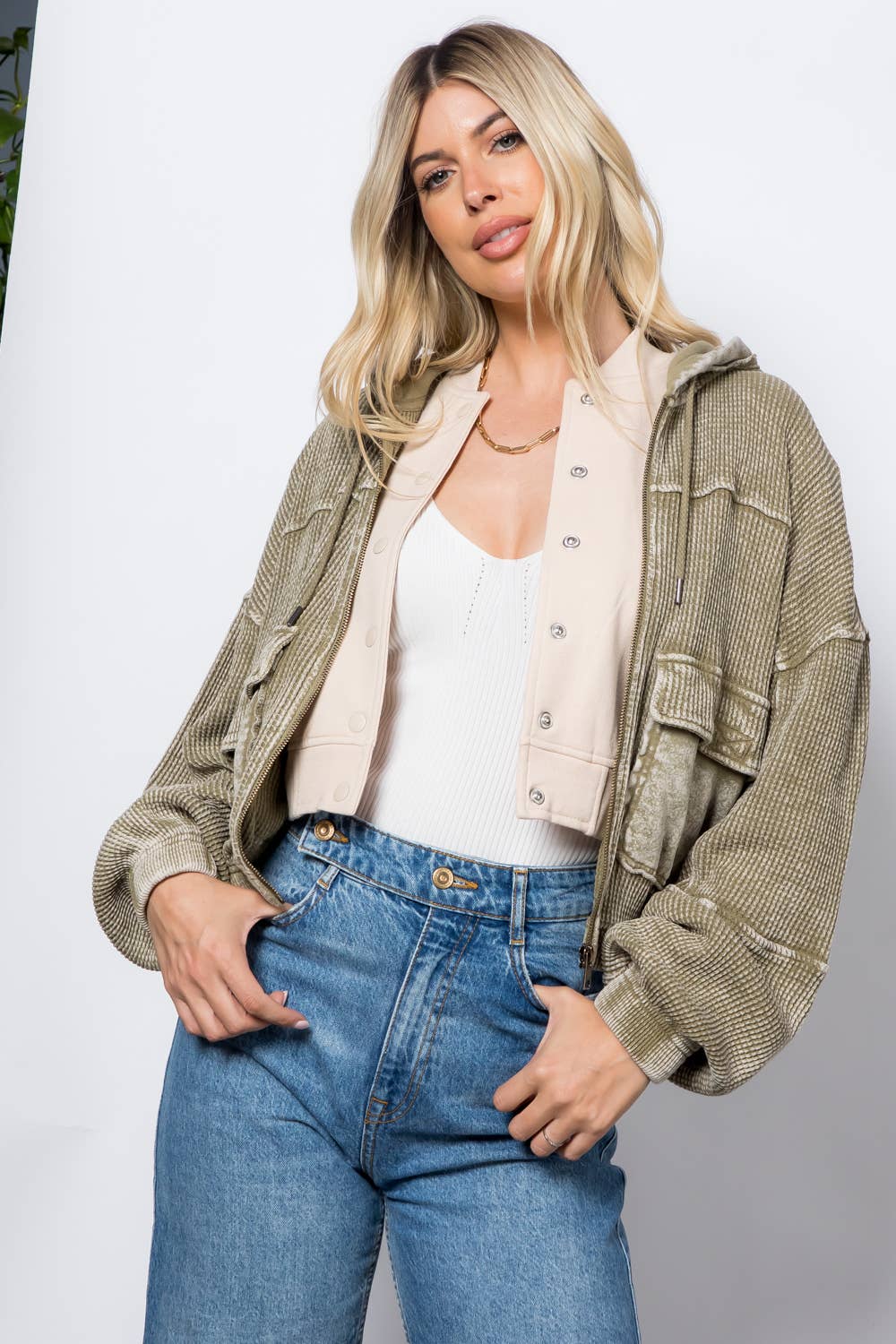 Sage Garment Dye Heavy Waffle Knit Hoodie Jacket