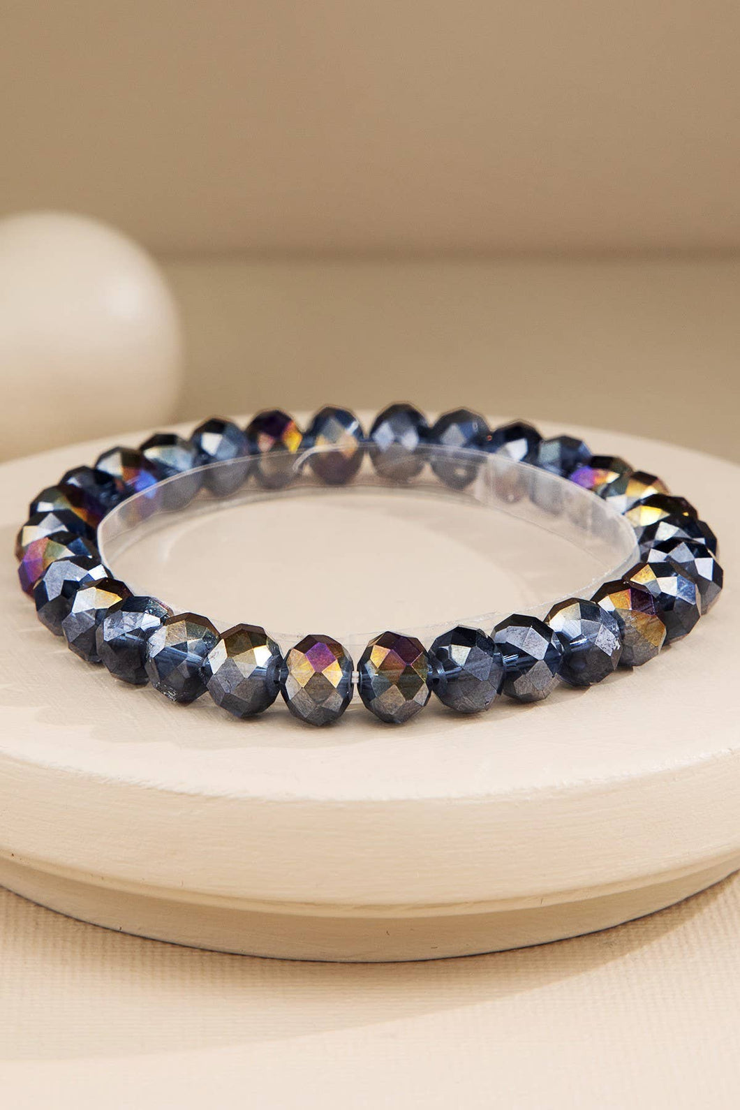 Shimmering faceted glass bead stretch bracelet *Glass bead *Nickel/Lead Compliant *APPROX. L 8" Diameter 2.5" 0.50oz *Imported