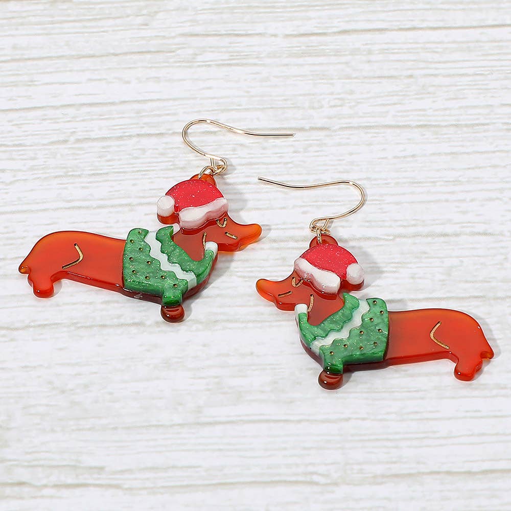 Holiday Sweater Santa Hat Dachshund Dog Dangle Earrings