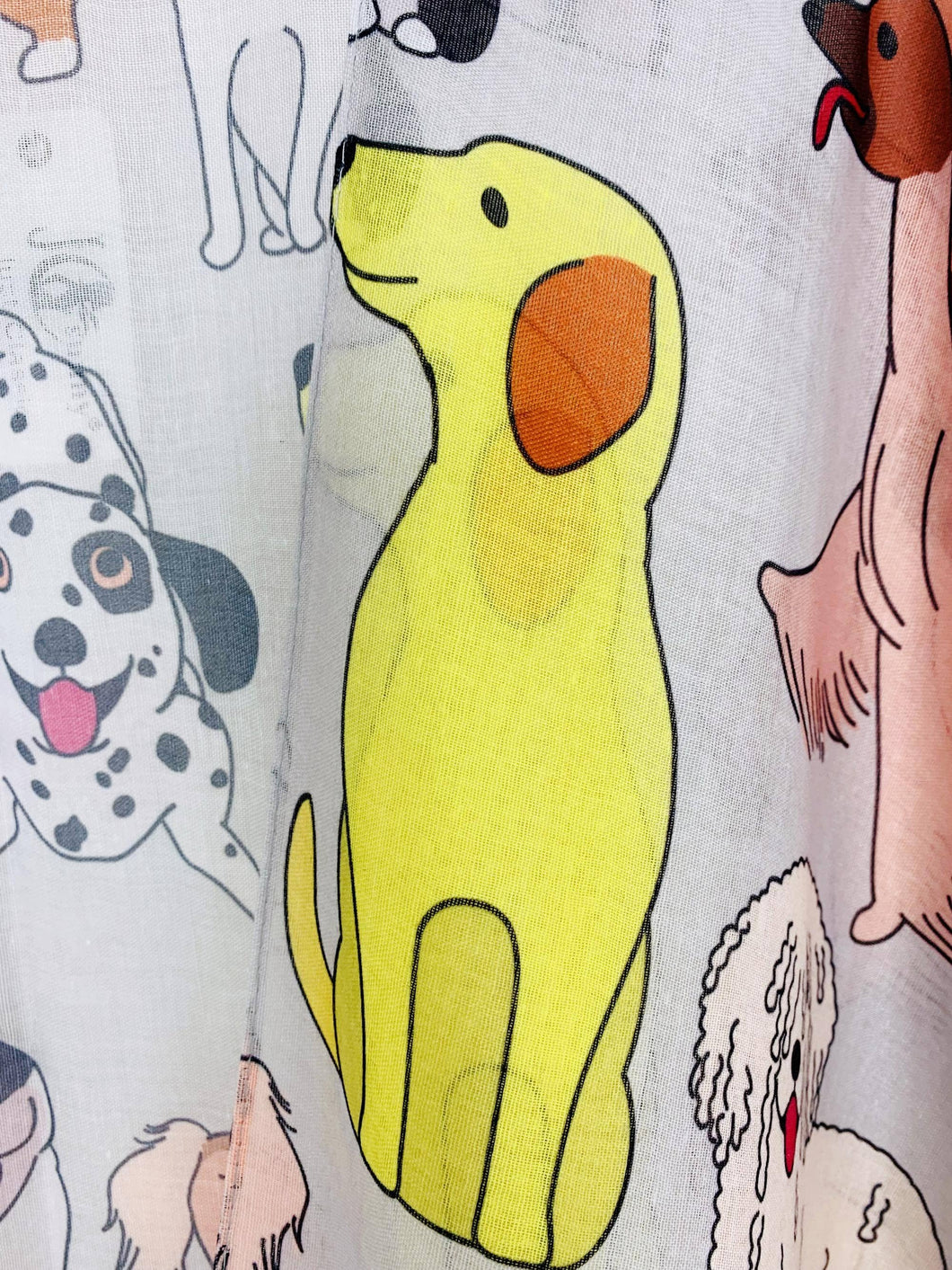 35" long from high point of shoulder to hem Fits size 2-22 100% cotton Hand wash; dry flat
