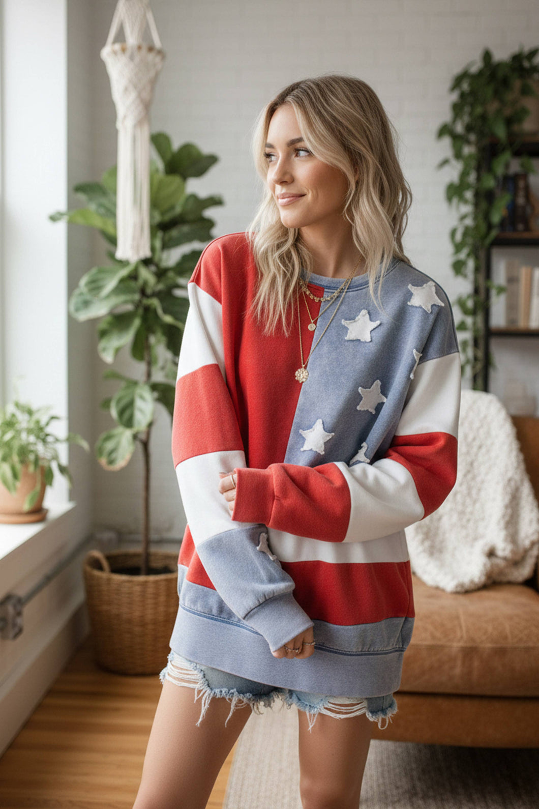 Red White Blue Mineral Washed American Flag Sweatshirt