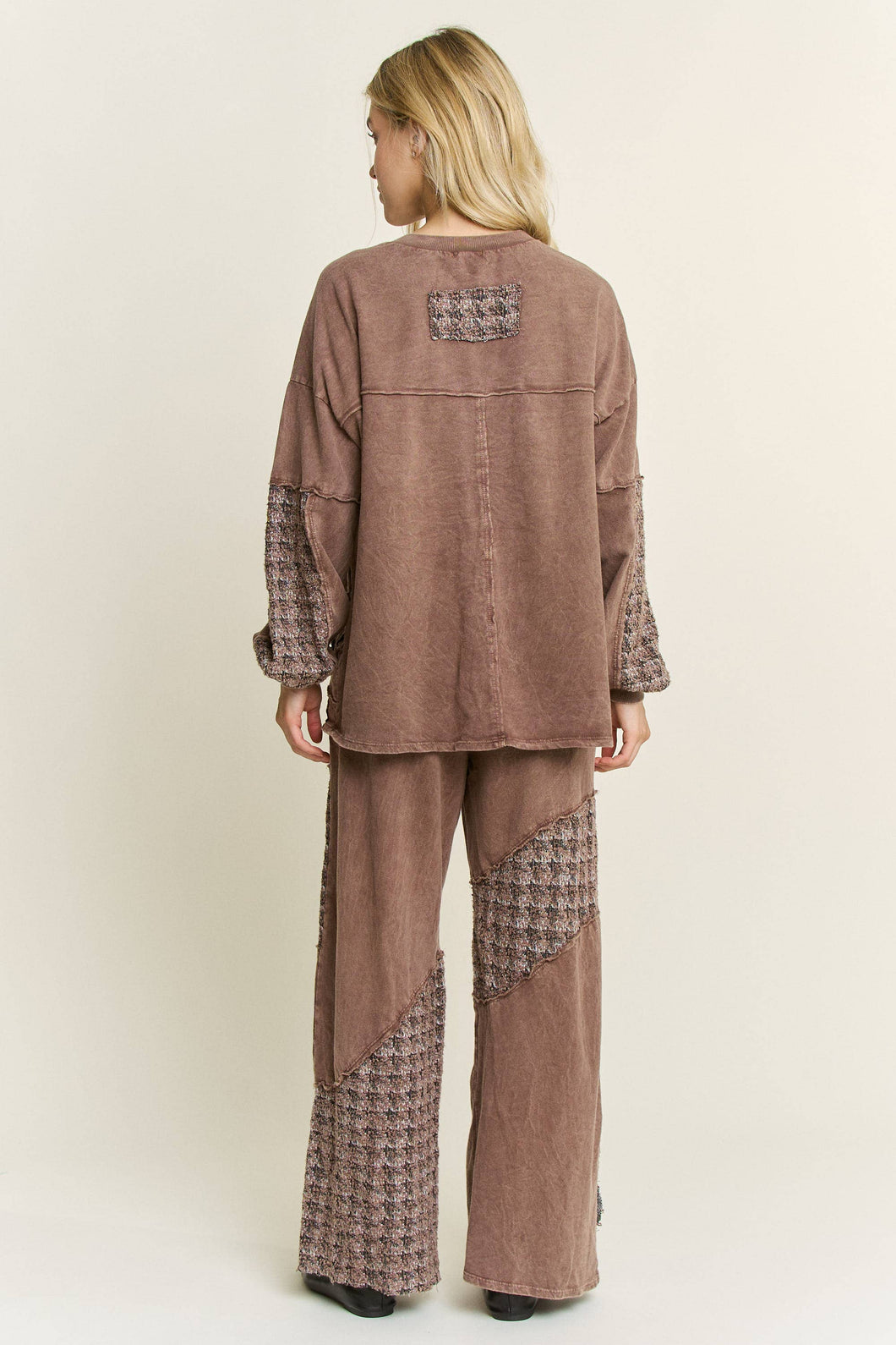 Chocolate Mineral Washed Tweed Daisy patch Wideleg J.Her Pants