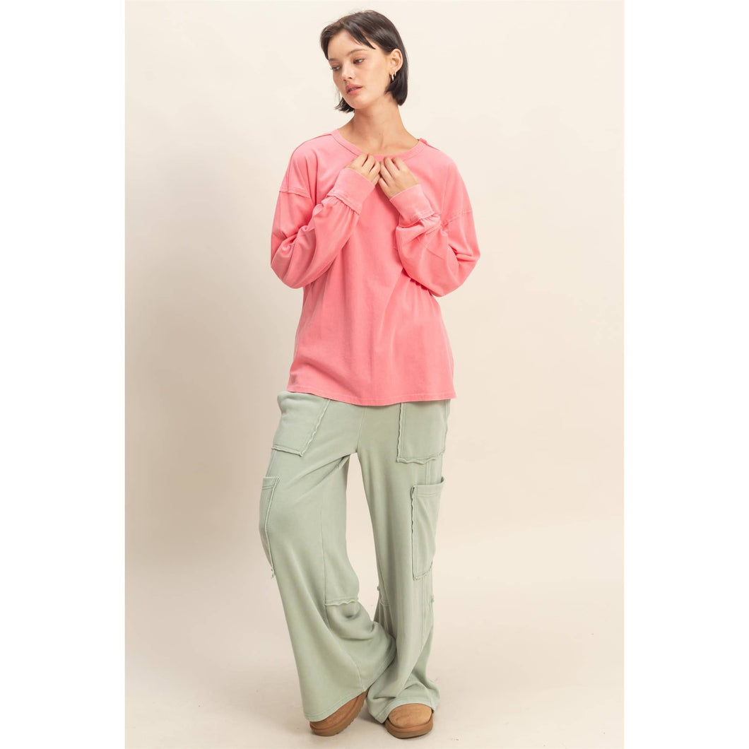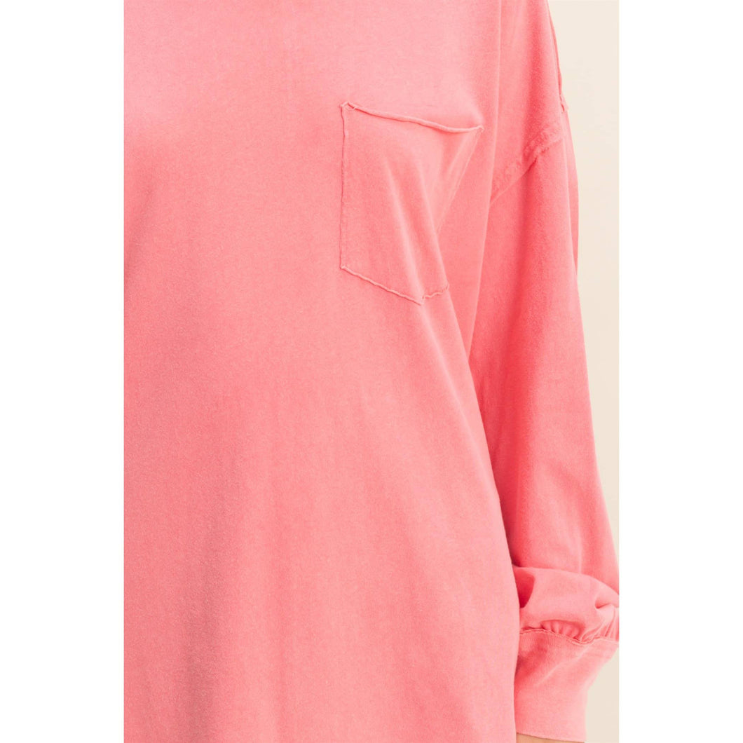 Taffy Pink Oversized Washed Long Sleeve Pocket Tee