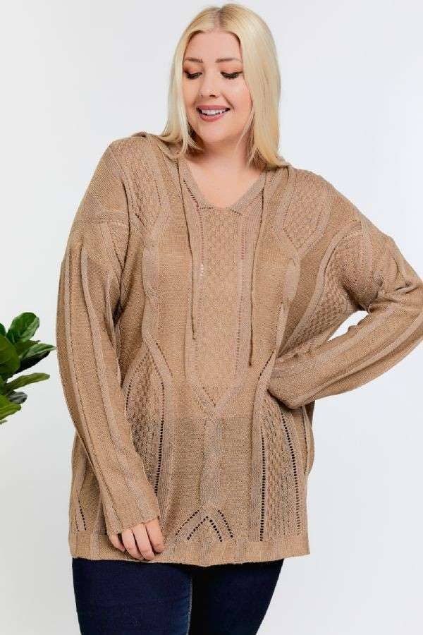 Cozy up in this Brown Plus Solid V Neck Long Sleeve Hoodie that combines comfort with casual flair. Made from a soft blend of 60% acrylic and 40% viscose, it’s perfect for layering or lounging. The relaxed fit and flattering V-neck add a touch of style, while the hood brings extra warmth for chilly days. Whether you're out and about or kicking back, this hoodie keeps it comfy and fun. Modeled in 1X for a true-to-size look on our 5'10" beauty rocking a 42C bust and curvy silhouette.