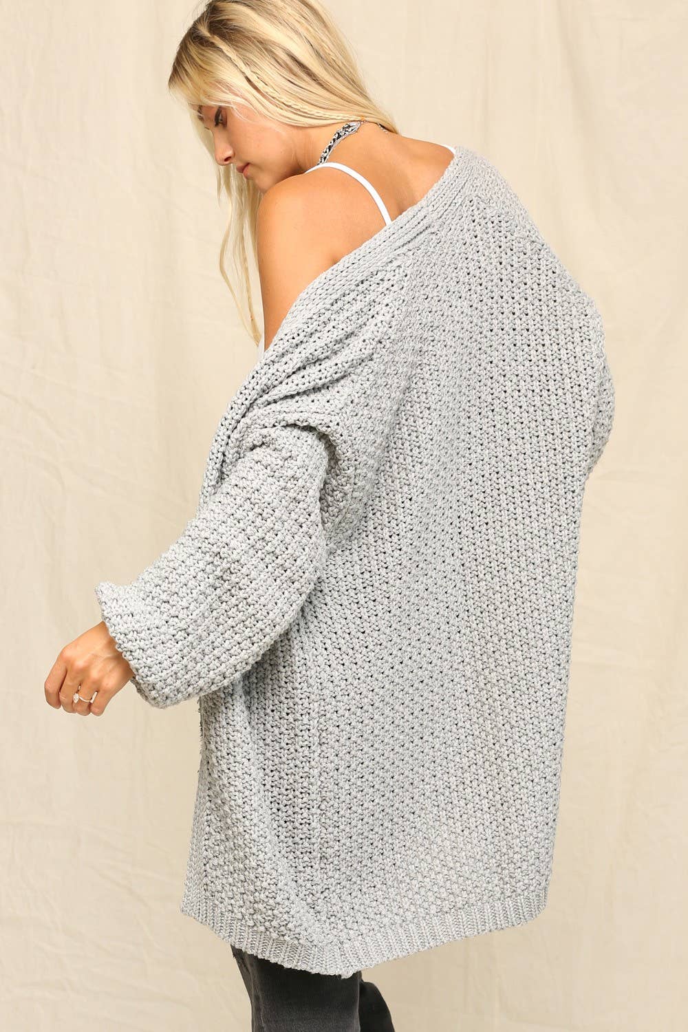 Heather Grey Chunky And Slouchy Knit Cardigan
