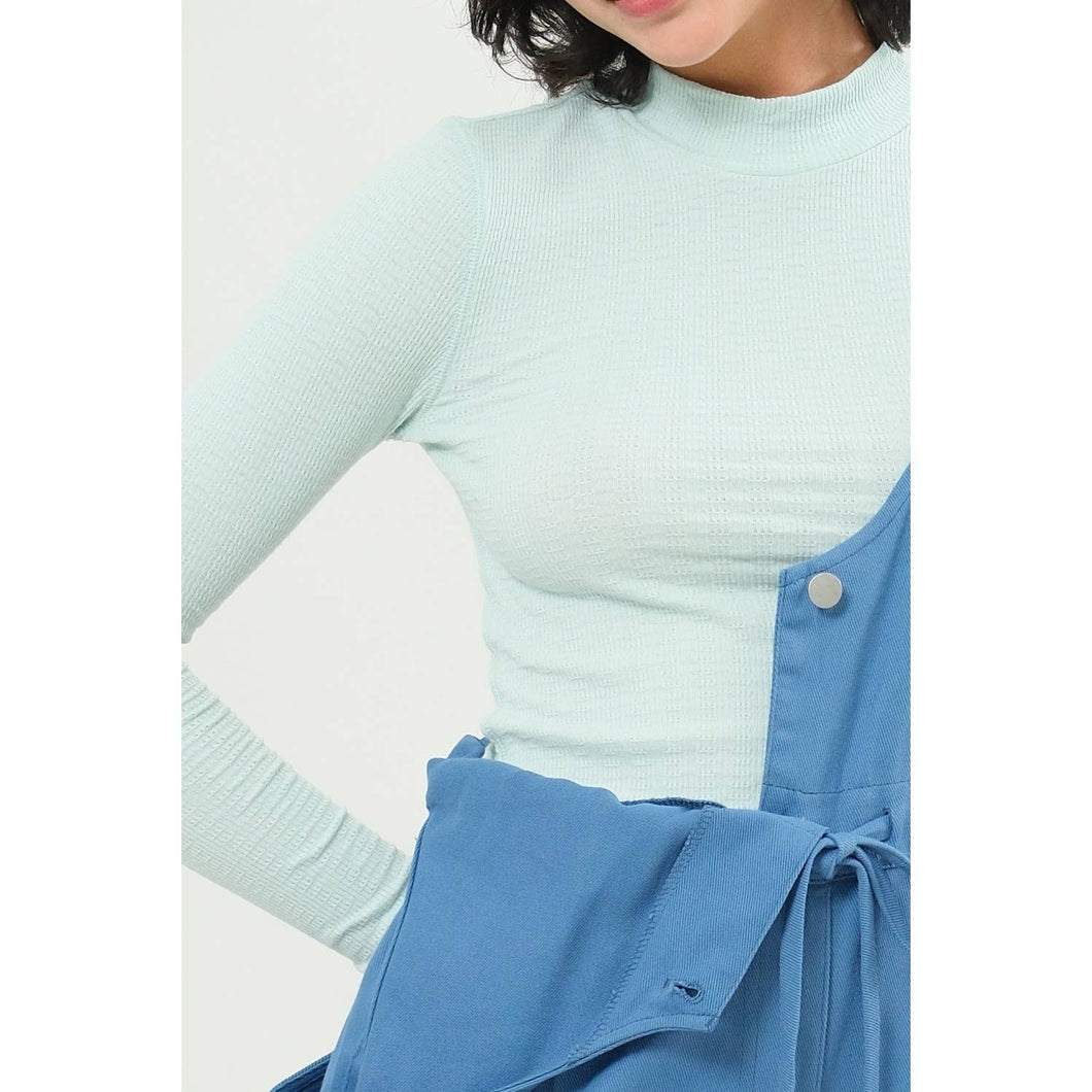 Upgrade Your Basics With This Textured High-Neck Fitted Top. Crafted From A Soft, Textured Fabric, This Long-Sleeve Top Features A Subtle High Neckline For A Touch Of Elegance. Perfect For Layering Or Wearing On Its Own, Pair It With Denim Shorts For A Casual Look Or Layer It Under A Blazer For A More Polished Style. 56% Cotton 38% Polyester 6% Spandex Imported. Designed in the USA
