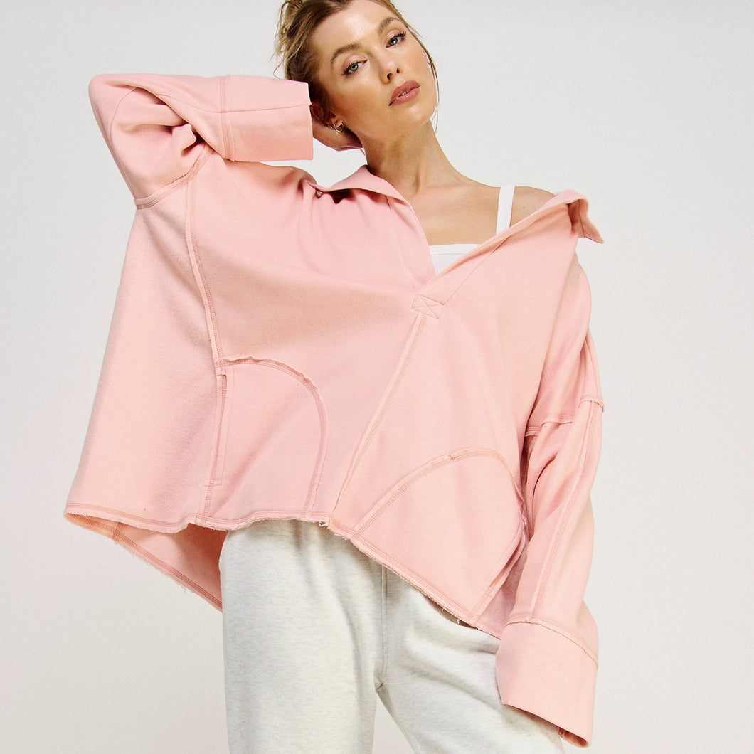 Dusty Pink V Neck Polo Oversized Sweatshirt Pullover
