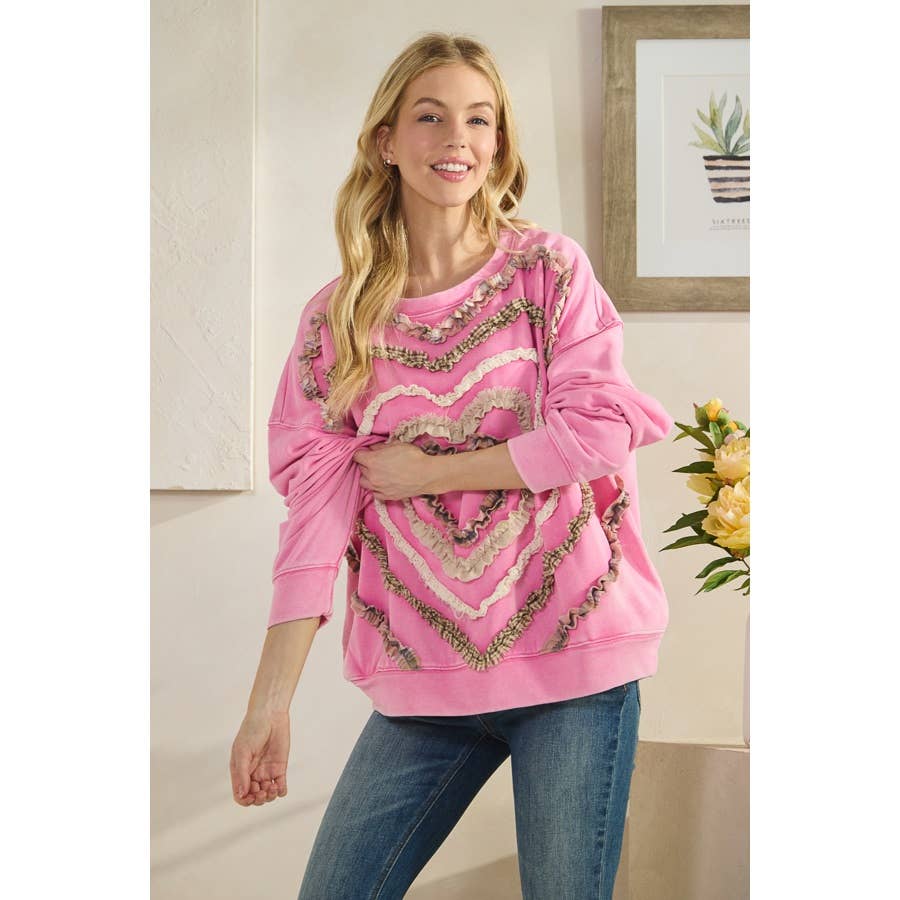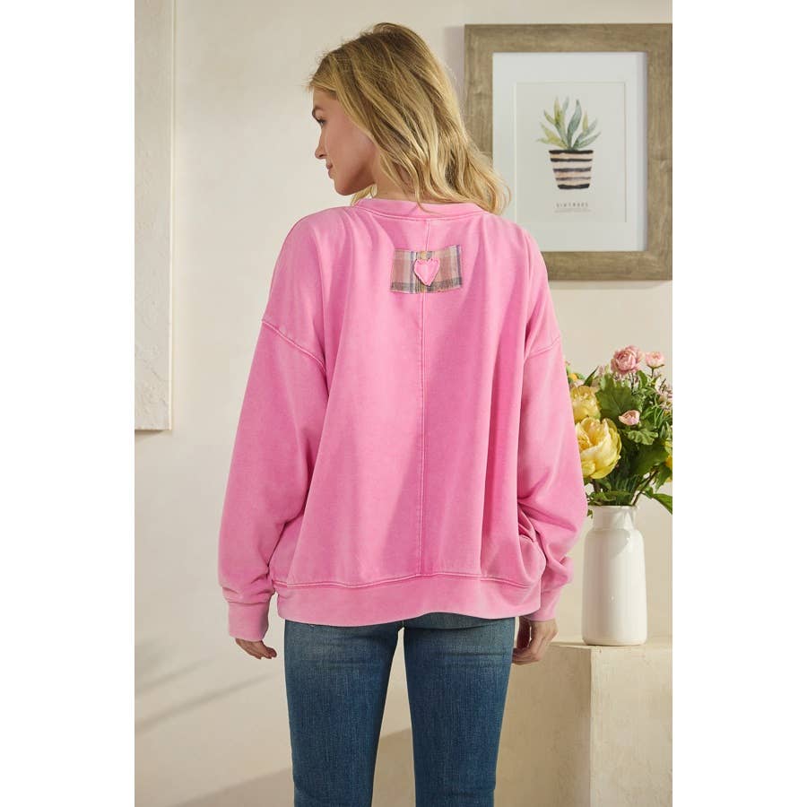 Bubble Gum Washed Heart Patchwork Oli+Hali Knit Pullover