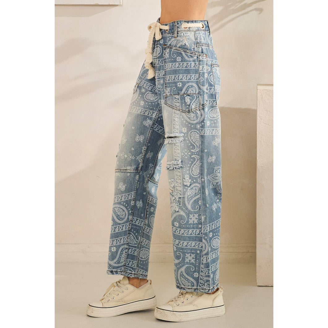 Denim Washed Paisley Patch Oli+Hali Jeans