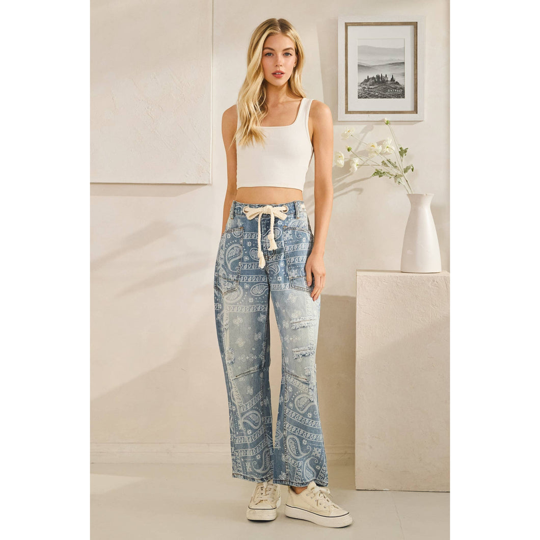 Step into style with the Denim Washed Paisley Patch Oli+Hali Jeans! Featuring a relaxed fit and mineral wash detail, these jeans offer effortless comfort and undeniable cool. Crafted from 85% cotton and 15% polyester, they’re soft, durable, and true to size—just like our model’s favorite size S. Perfect for adding a playful twist to your casual wardrobe.