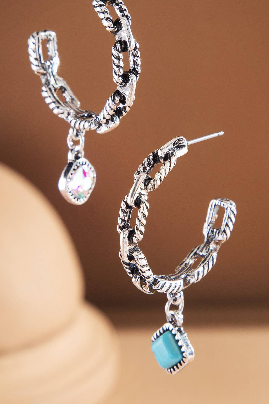 Classic hoop design meets Western flair in these eye-catching earrings. Accented with shimmering glass stones, they offer just the right amount of sparkle while keeping a rugged edge.