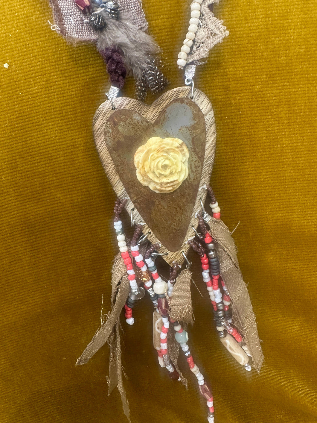 Oh my! This adjustable necklace is so adorable. The hand stitching and beading on this fun necklace makes each piece one of a kind. Wears with absolutely everything RARE BIRD.