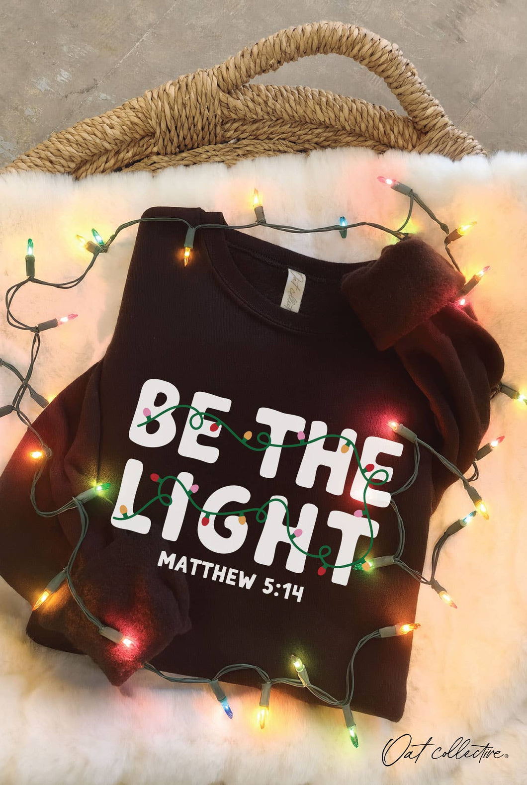 Shine bright in this BE THE LIGHT graphic sweatshirt, a cozy plus-size essential that's as meaningful as it is comfortable. Crafted from premium fleece with a perfect blend of cotton and polyester, this crewneck pullover features ribbed cuffs and waistband for a polished fit. Hand-printed with high-quality ink and finished with an exclusive Oat Collective label, it's ideal for layering through every season. Whether you're spreading positivity or just staying warm in style, this sweatshirt delivers softness and substance in one fashion-forward piece.