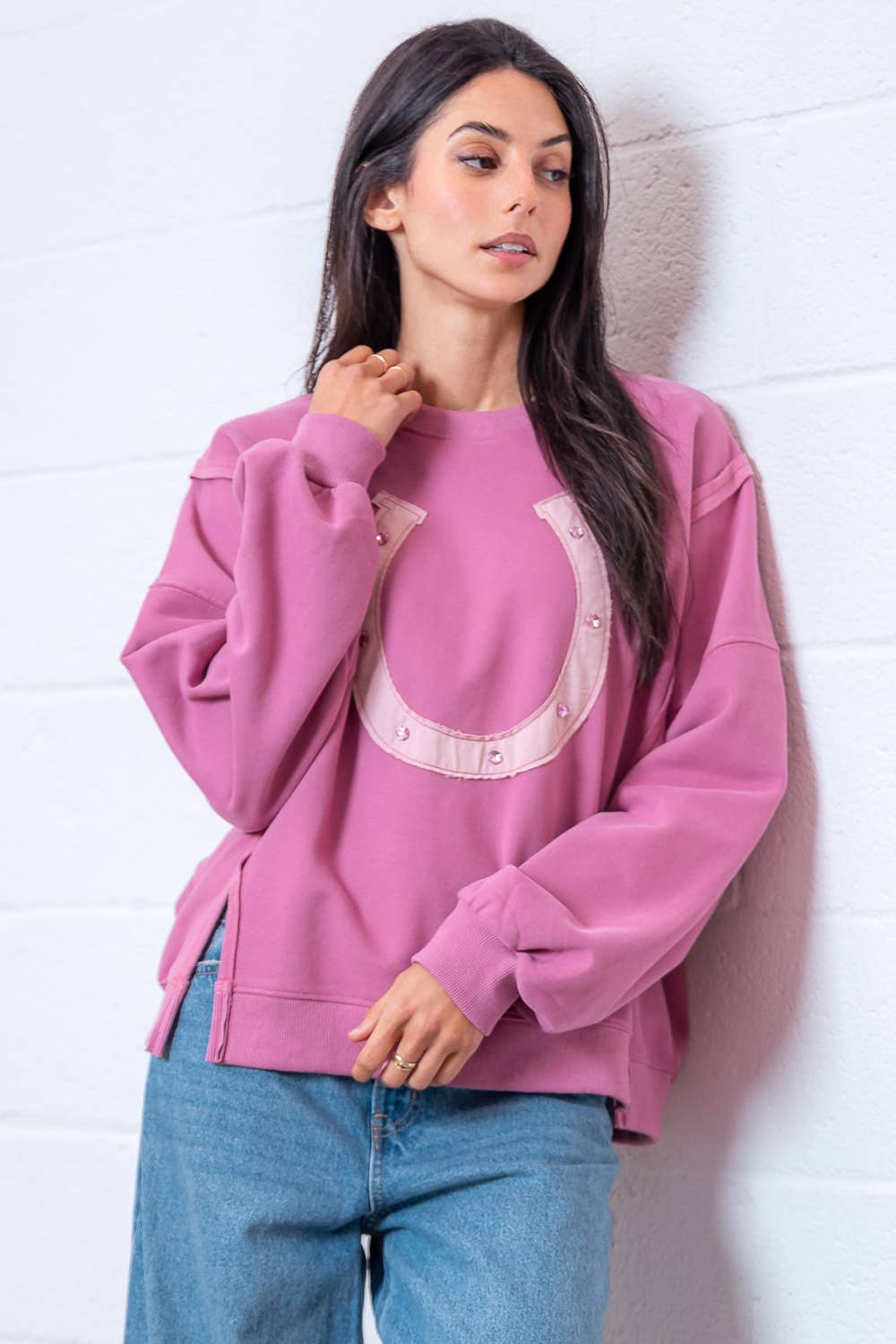 -Style: long sleeve neck horseshoe contrasted sweatshirt