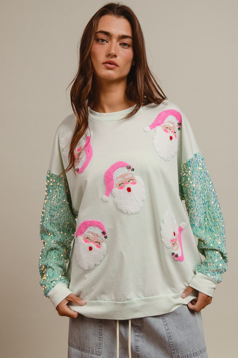 Mint Green Velvet Sequin Santa Bibi Christmas Sweater 9/15/25 1155