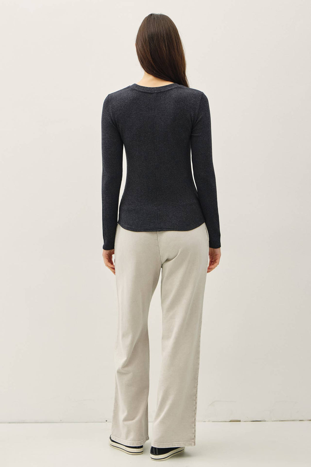 Heather Charcoal Modal Classic Ribbed Long Sleeve Henley Top