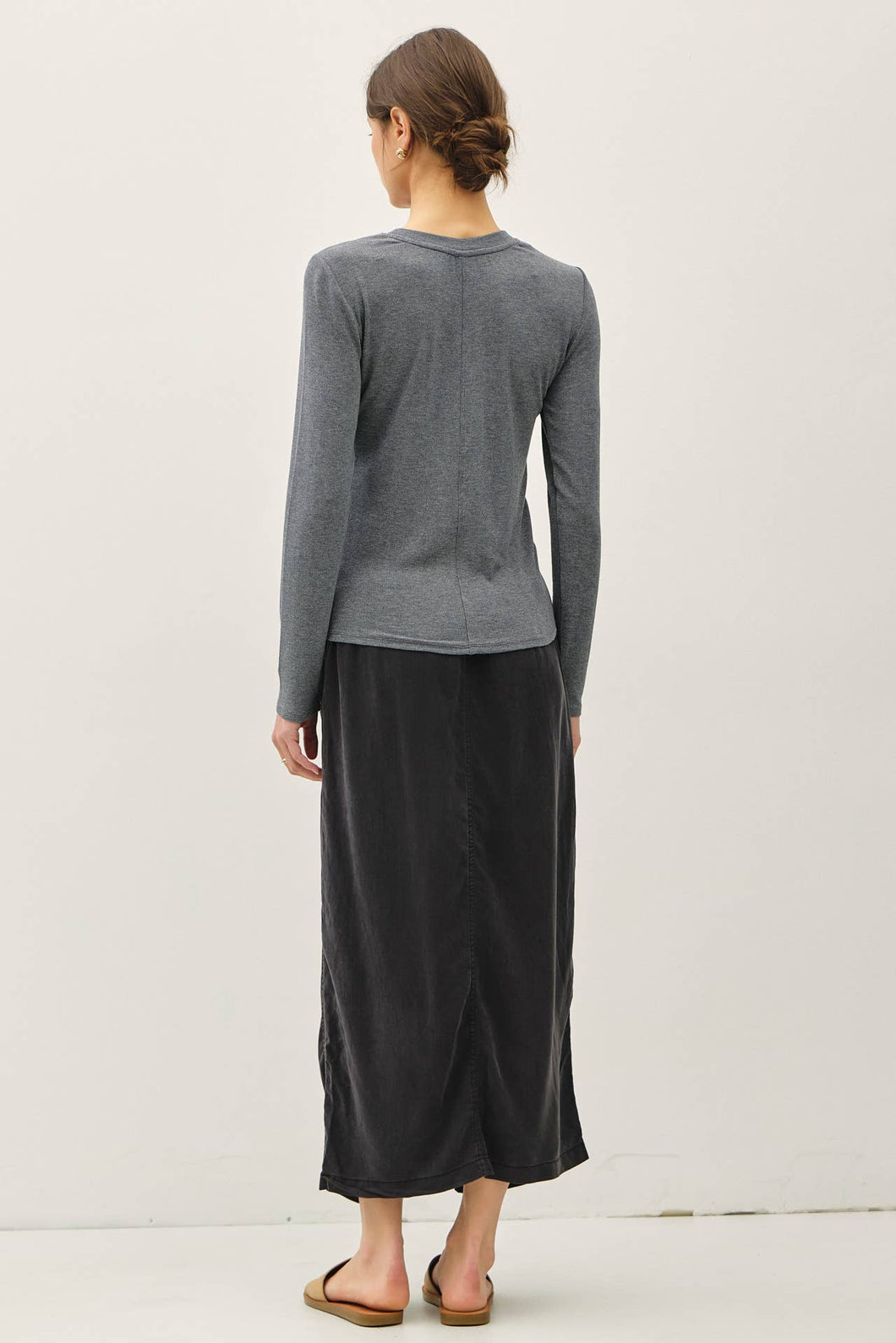 Heather Grey Modal Classic Ribbed Long Sleeve Henley Top