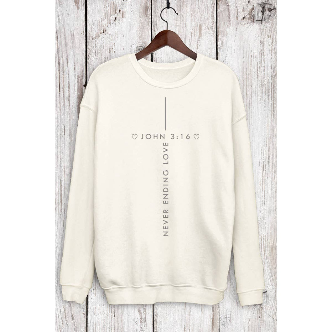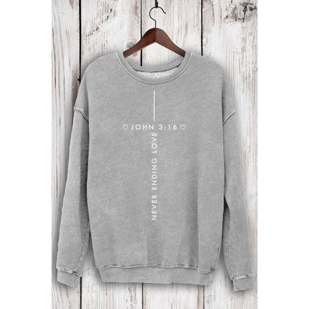 Graphic sweatshirt with an authentic vintage look and a softer feel that is only possible to achieve by using our special enzymes to dye and mineral wash processes. - Brushed fabric - Pre-shrunk - Washing Instructions: - Cold water preferably like colors - No bleach - Tumble dry low Graphic tee & top garment dye. Screen printed t-shirts SWEATSHIRT , SWEATSHIRTS, JOHN, BIBLE, NEVER ENDING, CHRISTIAN