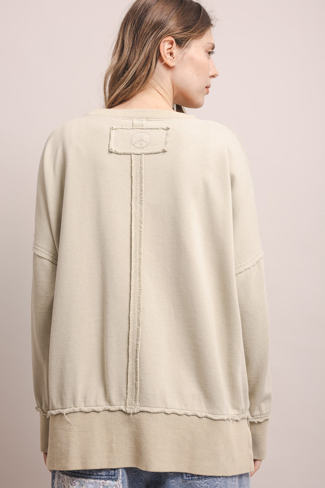 Slip into pure comfort with this laid-back pullover that's got all the right moves. Featuring a relaxed fit and dropped shoulders for that effortlessly cool vibe, it's crafted from soft French terry knit that's been mineral washed for a lived-in feel. Raw seaming details add an edgy touch, while side slits keep things interesting. Made from 100% cotton, this is your new go-to for cozy days that don't compromise on style.
