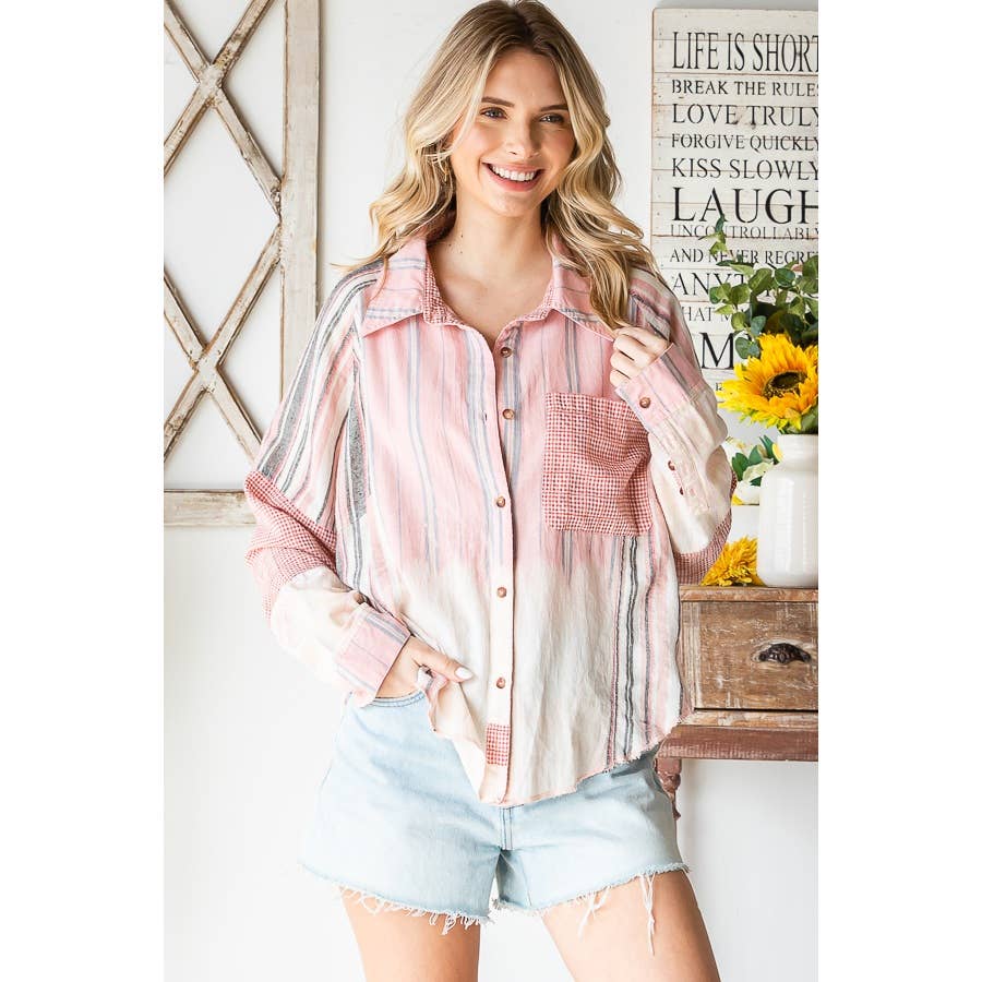 Pink Combo Washed Mixed Plaid Pocket Long Sleeve Oli+Hali Shirt – B'Dazzled Shop