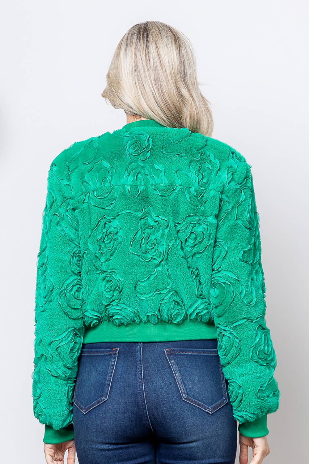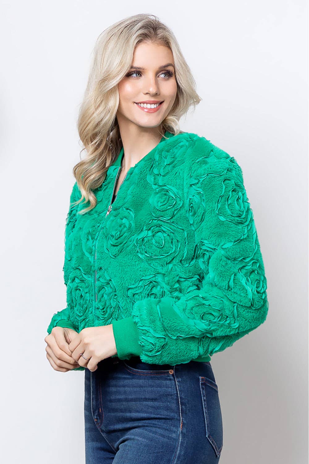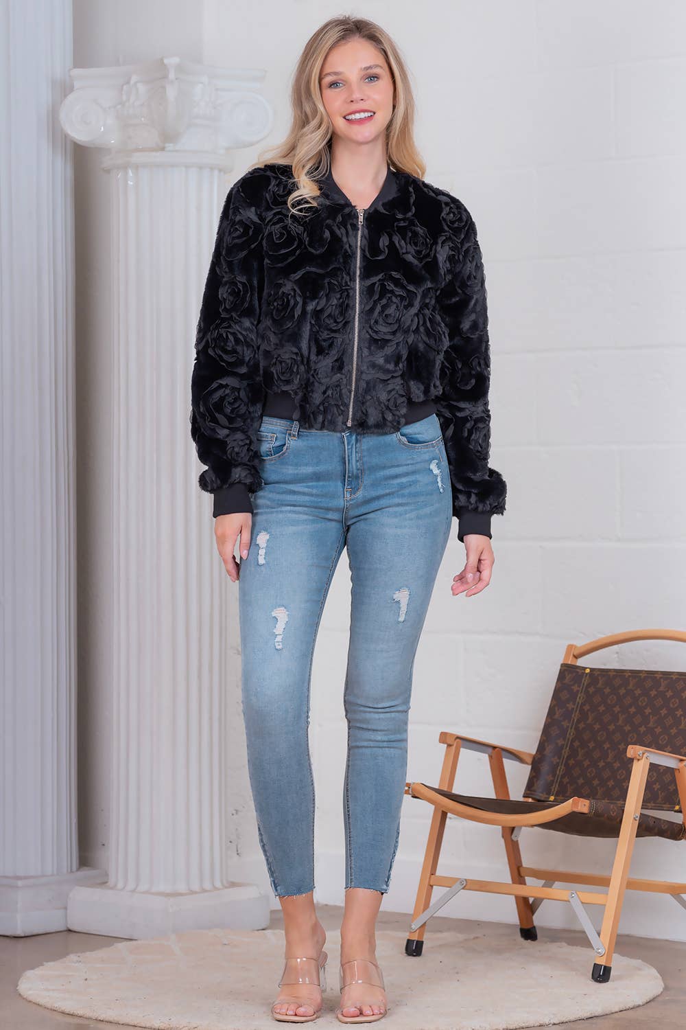 -Style: Textured Rosette Embellishment fur Bomber Jacket