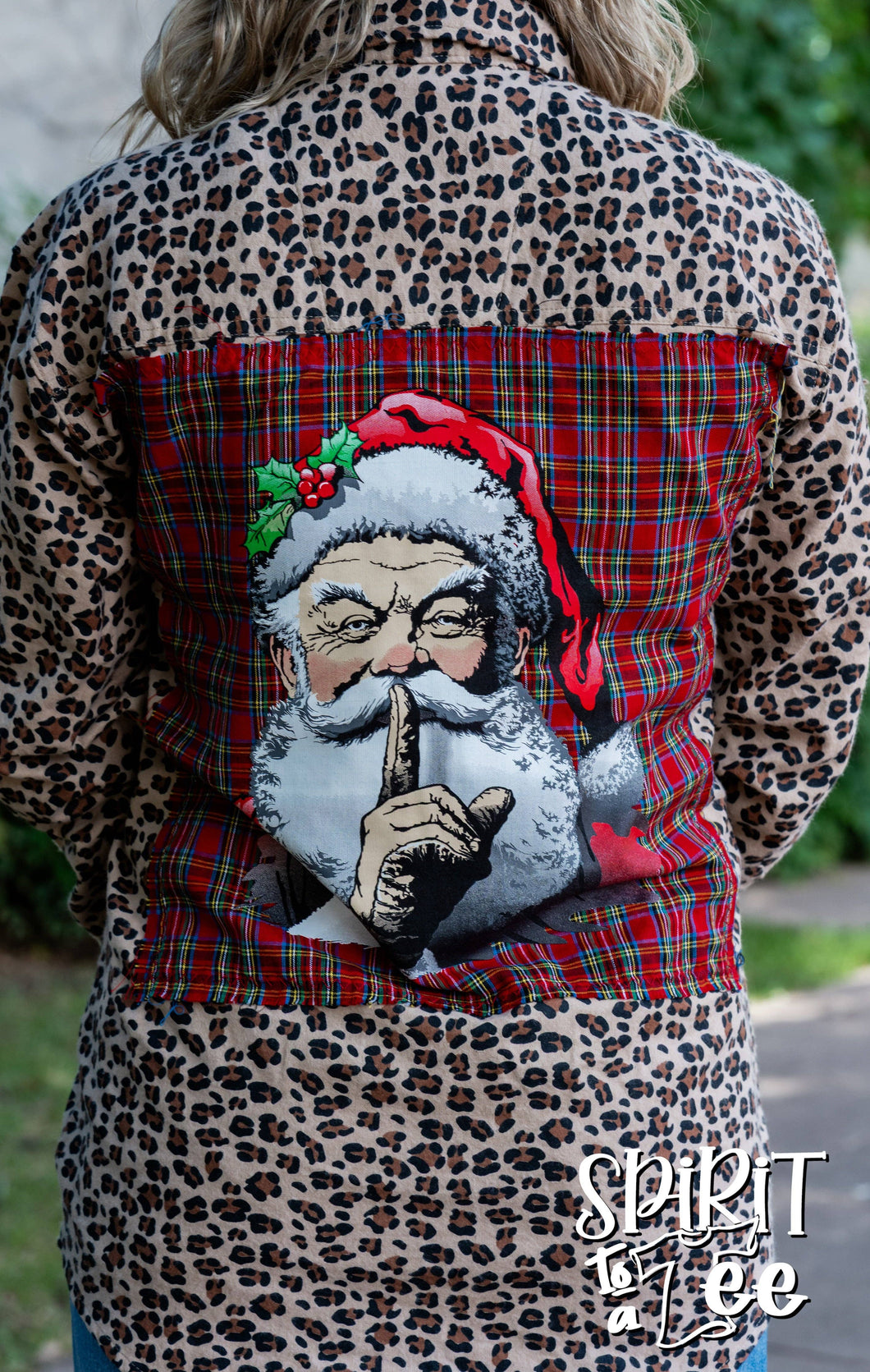 Believe Santa Patch on the Back of an Animal Print Flannel * 100% Cotton * Oversize Fit * 2 Front Pockets