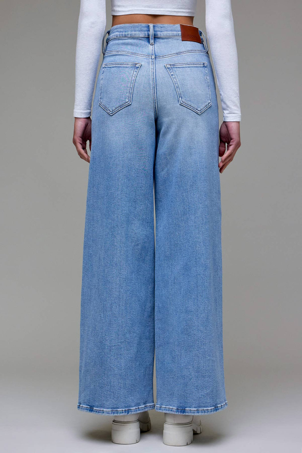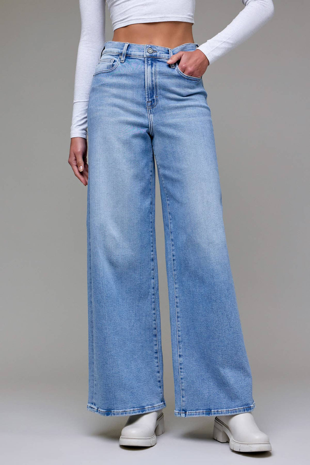 Medium Light Clean Stretch High Rise Wide Leg Hidden Jeans